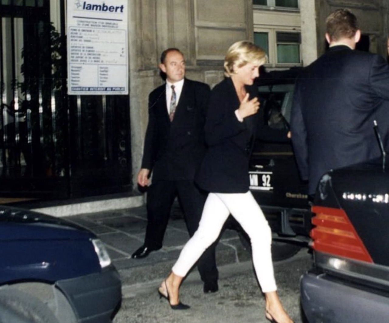 Diana, Princess of Wales wore a pair of Armani chinos for her iconic walk over minefields and also an Armani jacket on the day of her death in August 1997.