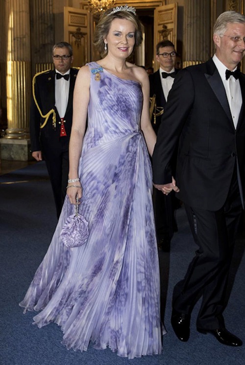 Queen Mathilde of Belgium has worn Armani Privé for the majority of her gala appearances for years, like for the Wedding of Crown Princess Victoria of SwedenWedding of Prince William and Catherine Middleton, Wedding of Prince Albert II of Monaco, Queen Margrethe’s 75th Birthday Celebrations, Belgian State Visit to Denmark, and the Australian State Visit to Belgium. After Natan, Armani is no doubt her most worn designer.