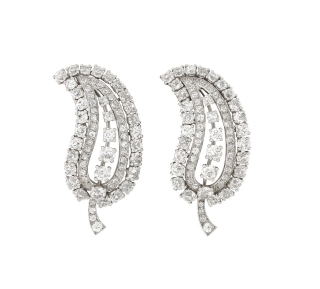 Diamond Leaf Clip-Brooches Mounted By Cartier