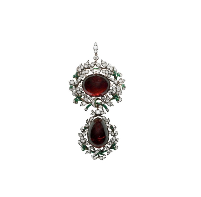Antique Garnet, Diamond And Enamel Pendant/Brooch