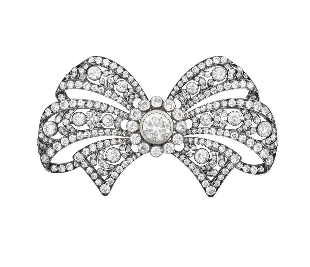 A Chaumet Diamond Brooch transformable into a jabot pin with rose and old-cut diamonds, circa 1900, in a Joseph Chaumet monogrammed fitted case.
