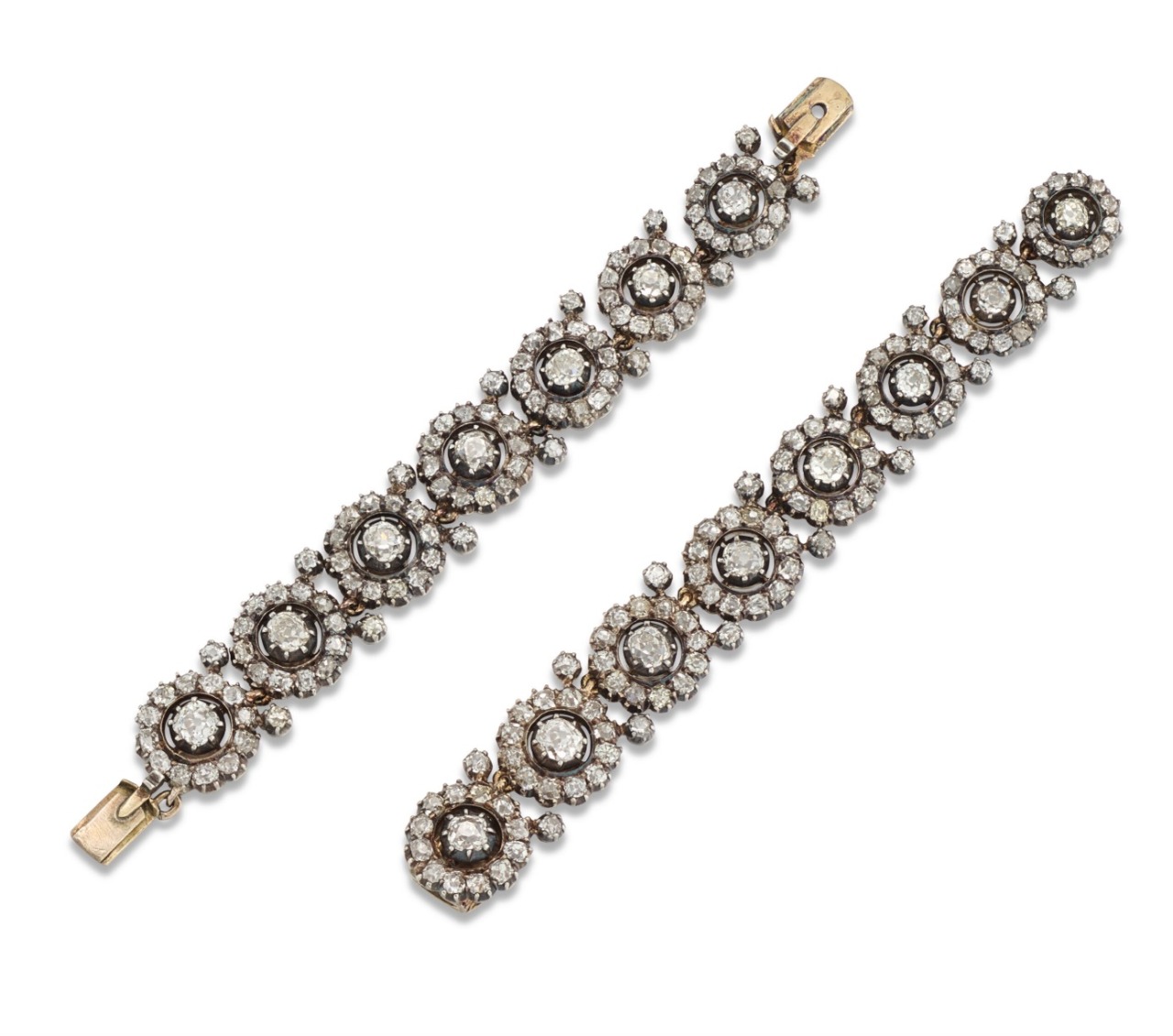 A late 19th century Diamond Bracelet With Old-Cut Diamonds, Silver And Gold, Circa 1880, Back Section From A Tiara/Necklace.