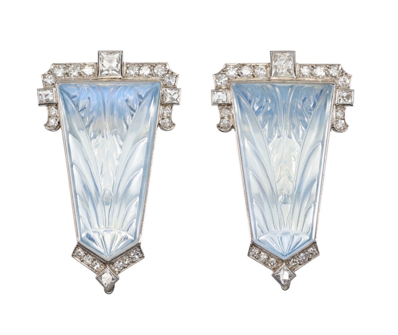 Gillot & Co. Art Déco Moonstone And Diamond Clip Brooches