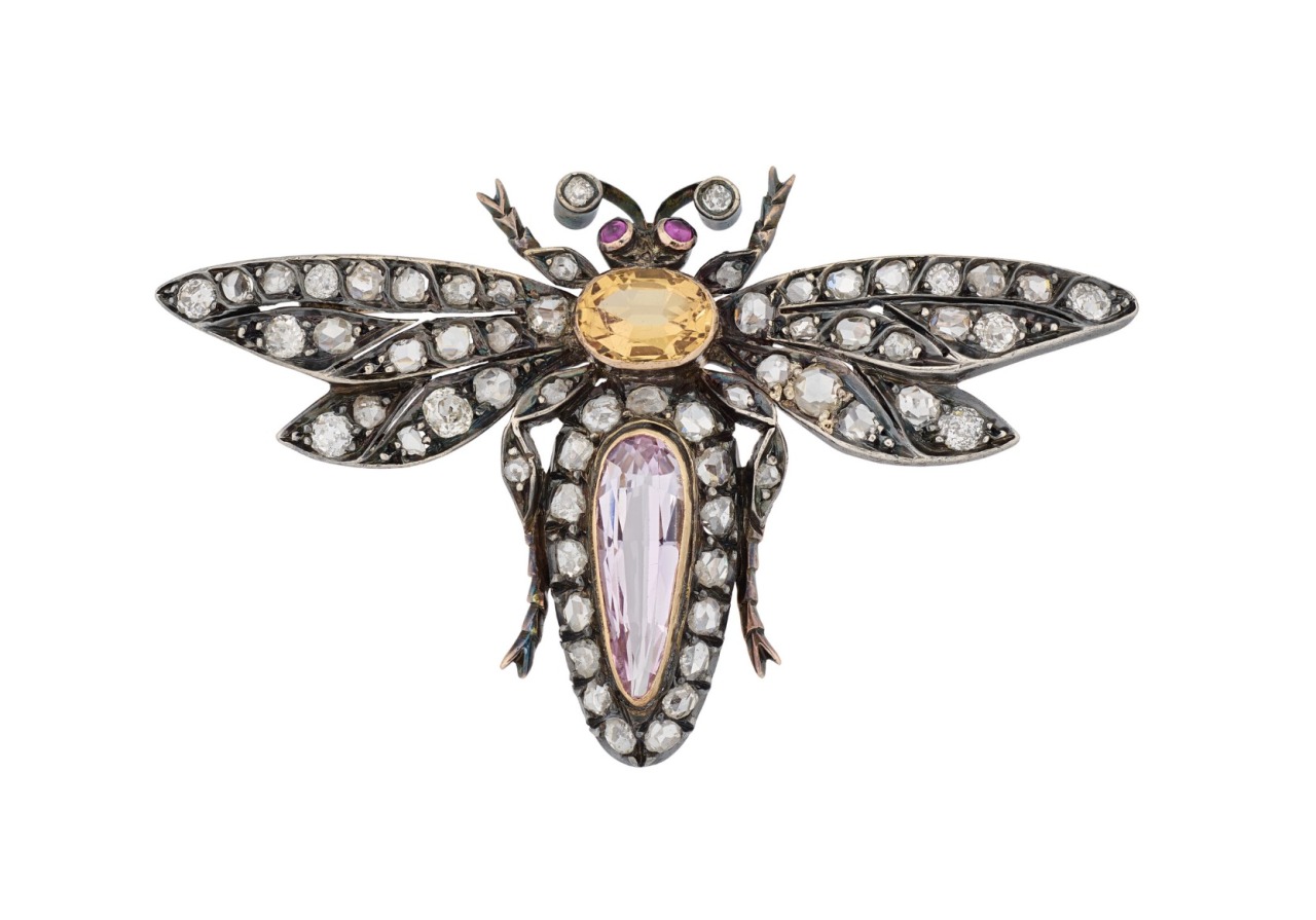 Topaz And Diamond Winged Insect Brooch