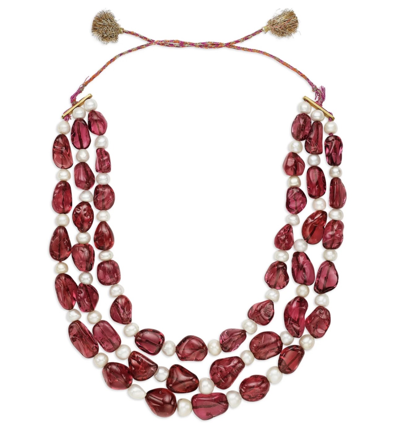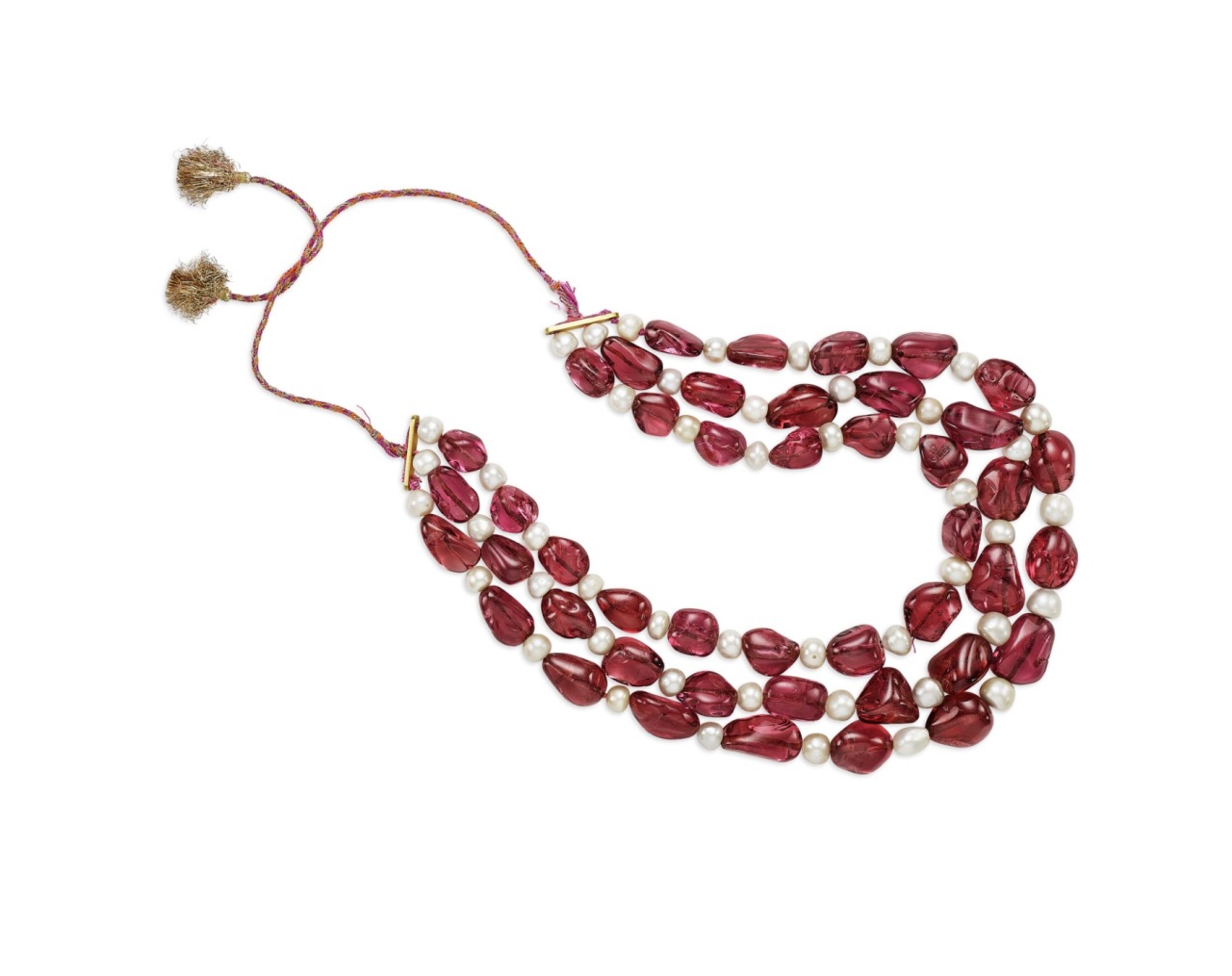 Mughal Three Strand Spinel and Natural Pearl Necklace