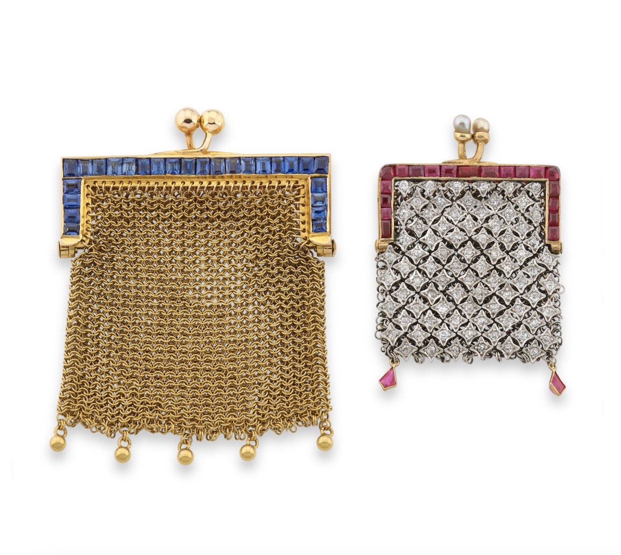 Gold and Sapphire Purse and a Ruby, Seed Pearl and Diamond Purse