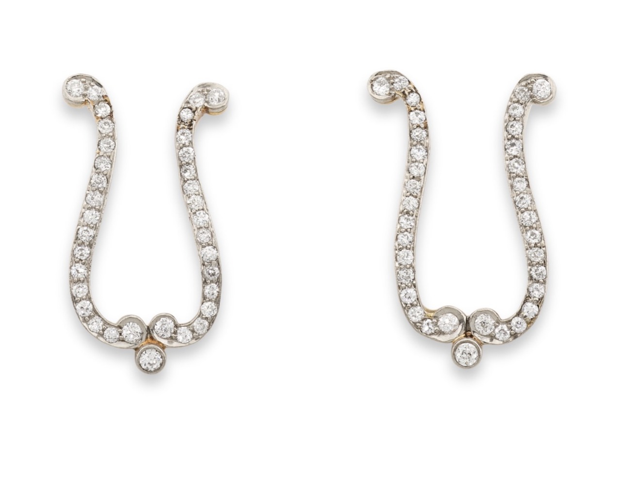 A pair of Diamond Brooches, each set with circular- and single-cut diamonds.