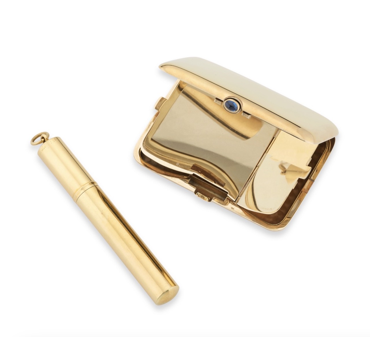Cartier Gold and Sapphire Compact and Gold Lighter
