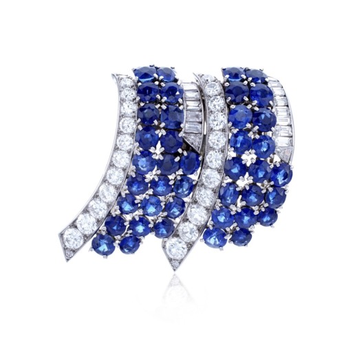 Van Cleef & Arpels Sapphire and Diamond Double-Clip Brooch