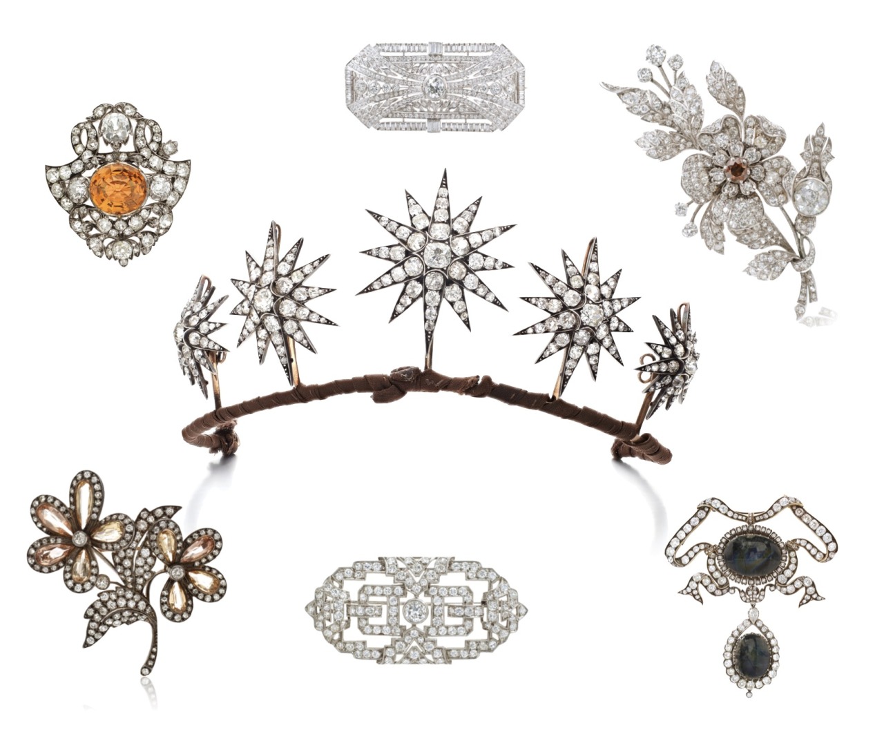 There are many striking antique Jewels coming up for Auction this month, with a Diamond Star Tiara and several Antique and Art Deco Brooches going on Auction in the Sotheby’s ‘Fine Jewelry’ Sale in Geneva tomorrow!