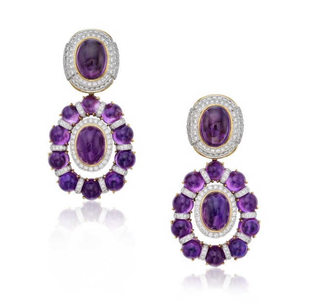 David Webb Amethyst and Diamond Pendant-Earclips
