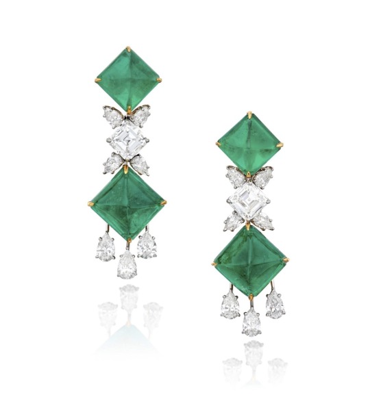 Graff Emerald and Diamond Pendant-Earclips