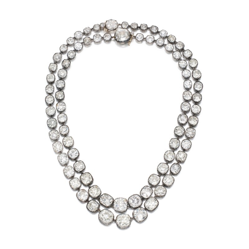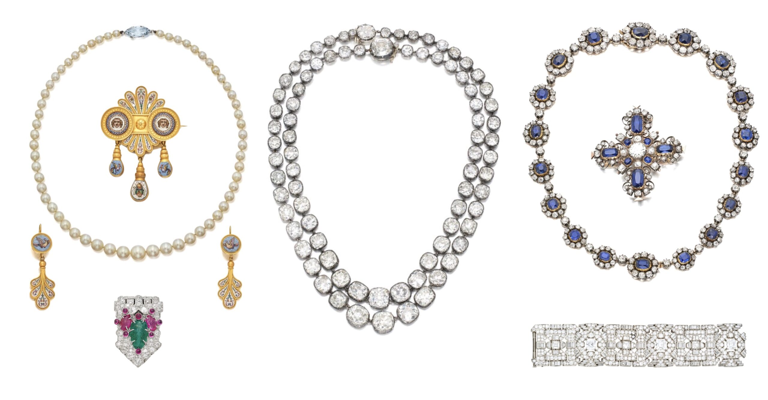 There are many striking antique Jewels coming up for Auction this month, with two Diamond Rivières and magnificent antique Jewels from an old Boston Family going on Auction at the Sotheby’s ‘High Jewellery’ Sale in New York City tomorrow!