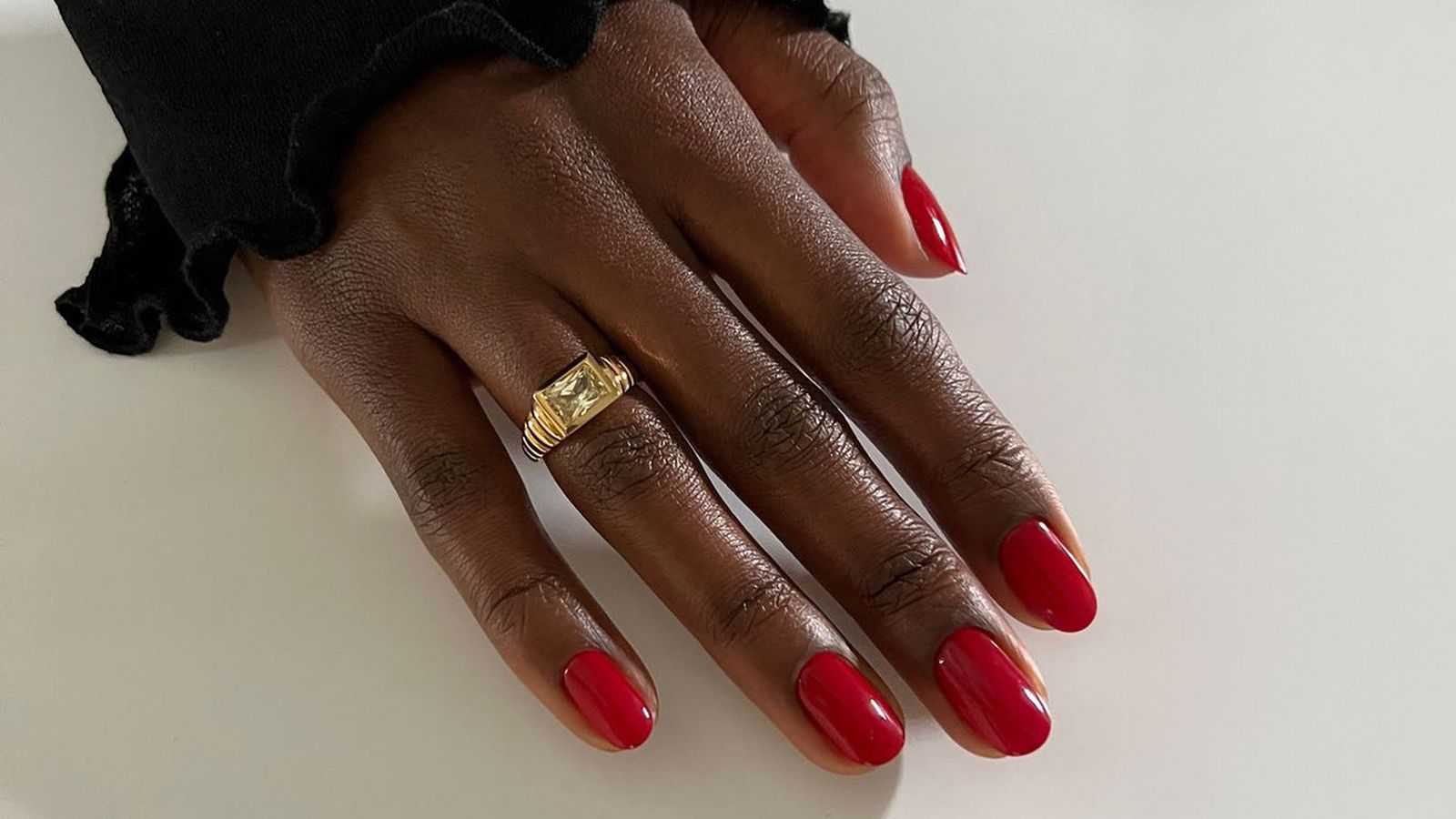 While all variations of ‘juicy summer red’ nails, our favourite iterations are those with orange undertones as the warmer tomato red tones flatter summer skin.