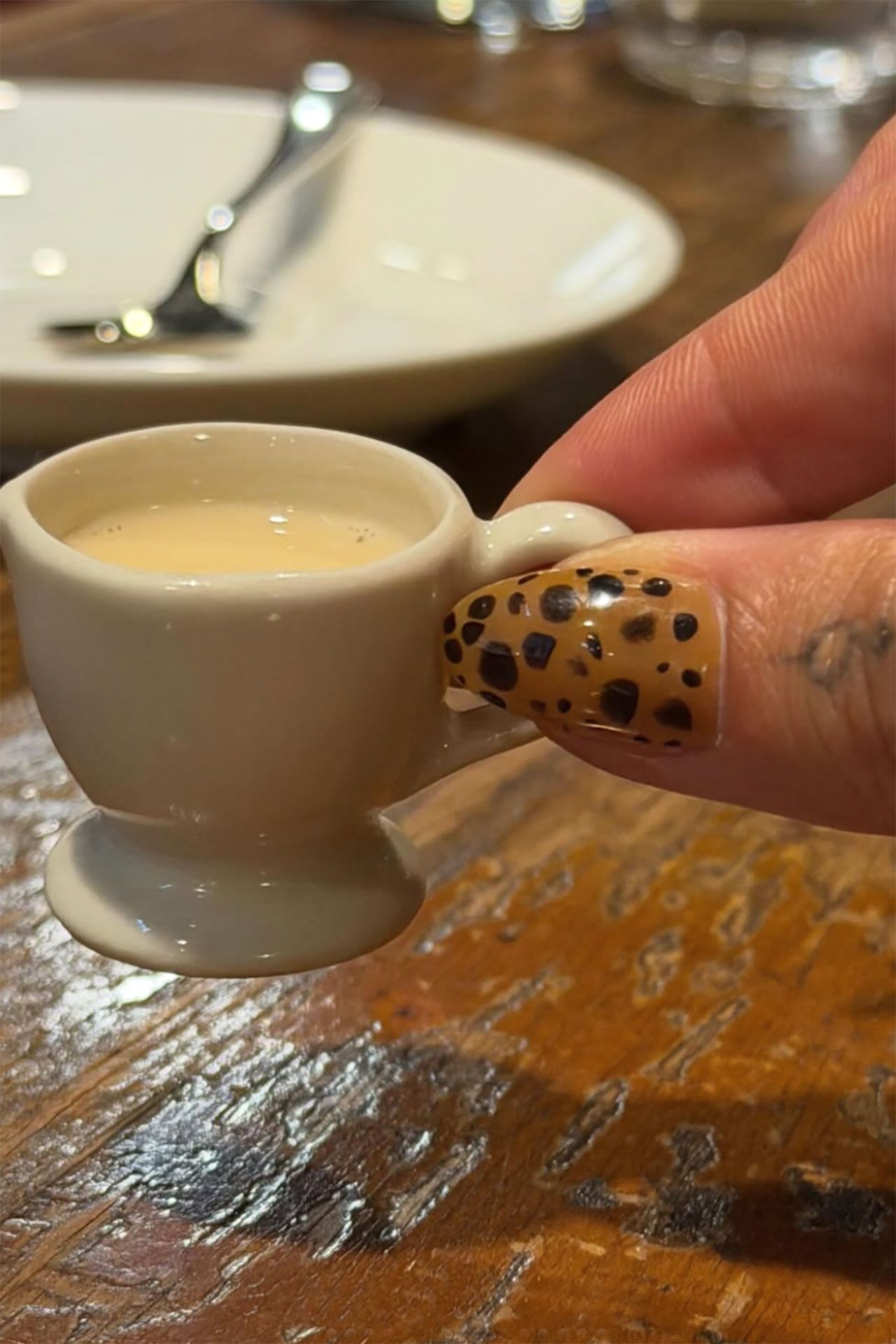 One option is to choose ready-made acrylics. But if you fancy being creative, you could try painting two coats of a tan or nude polish onto your nails. Once dry, take a thin nail art liner brush and dip it into a black nail polish. Dab tiny spots in different sizes onto your nails – either all over or concentrate purely on the tips. And don’t forget to take a leaf out of Hailey Bieber’s book and give your toes a feline upgrade, too.