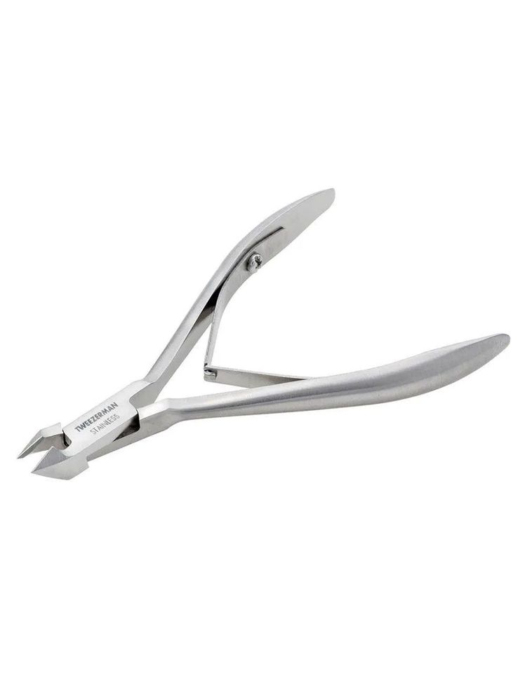 The toasted manicure is all about illuminating the natural nail, and Tom says that it works best with “sheer nudes” as a base. Because of this, nail prep is especially essential. To perfect the canvas, Tom always starts with Tweezerman tools: “Tweezerman Rockhard Cuticle Nipper for meticulous cuticles, Stainless Steel Fingernail Clipper, and Professional Nail Files for a perfect shape.”