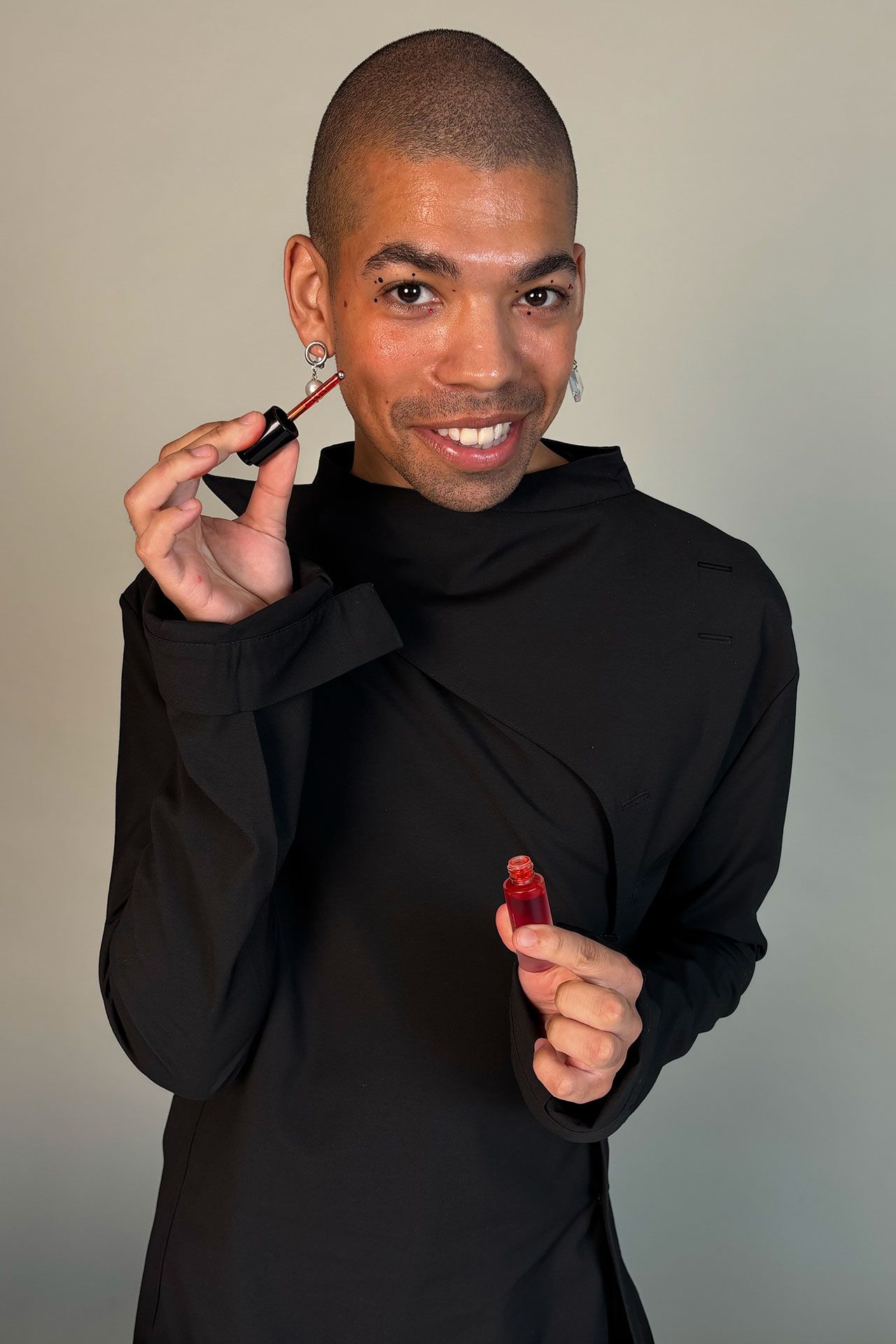 Image may contain Face Head Person Photography Portrait Adult Cosmetics Lipstick Body Part Finger and Hand