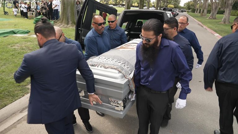 Mr Ayala-Uribe’s funeral was held this week. Dozens of extended family and friends wore t-shirts bearing his face. A mariachi band played as his casket was lowered into the ground and his mother heaved with sobs.