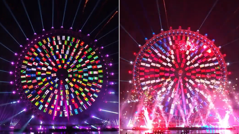 BBC viewers had seen a segment of the display overlaid with national flags from around the world, with a voiceover declaring “this is what England means to me”.