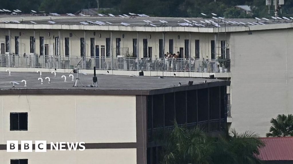Photographs show the satellite dishes on the compound’s rooftops and footage supplied to the BBC showed thousands of workers leaving KK Park on foot.