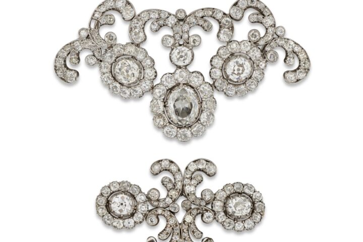 There are many striking antique Jewels coming up for Auction this month, with Lady Astor’s Cartier Turquoise Tiara, a Brooch from Viscountess Powerscourt, and another from Sir Edward Knox are among the spectacular Antique Jewels going on