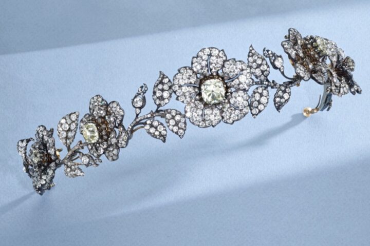 There are many striking antique Jewels coming up for Auction this month, with a Diamond Tiara, a Cameo Parure from Eugène de Beauharnais, Duke of Leuchtenberg and a Pearl Necklace given by King Gustav III among
