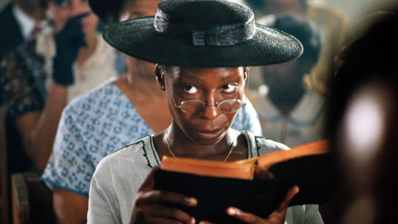 Image may contain: Whoopi Goldberg, Person, Reading, Clothing, Hat, Accessories, Glasses, Jewelry, Necklace, Adult, and Face