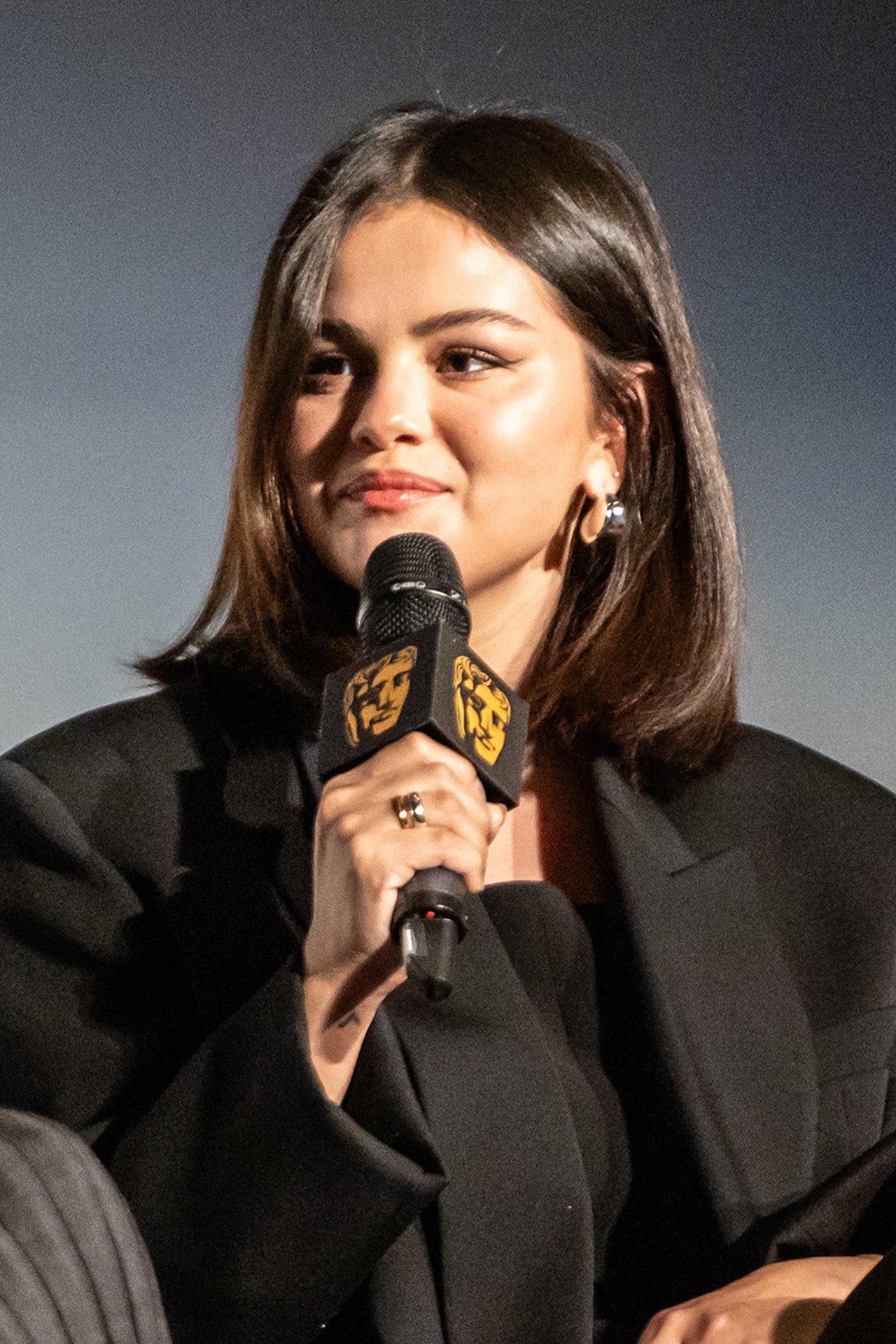 Image may contain Selena Gomez Electrical Device Microphone Adult Person Accessories Jewelry Ring and Crowd