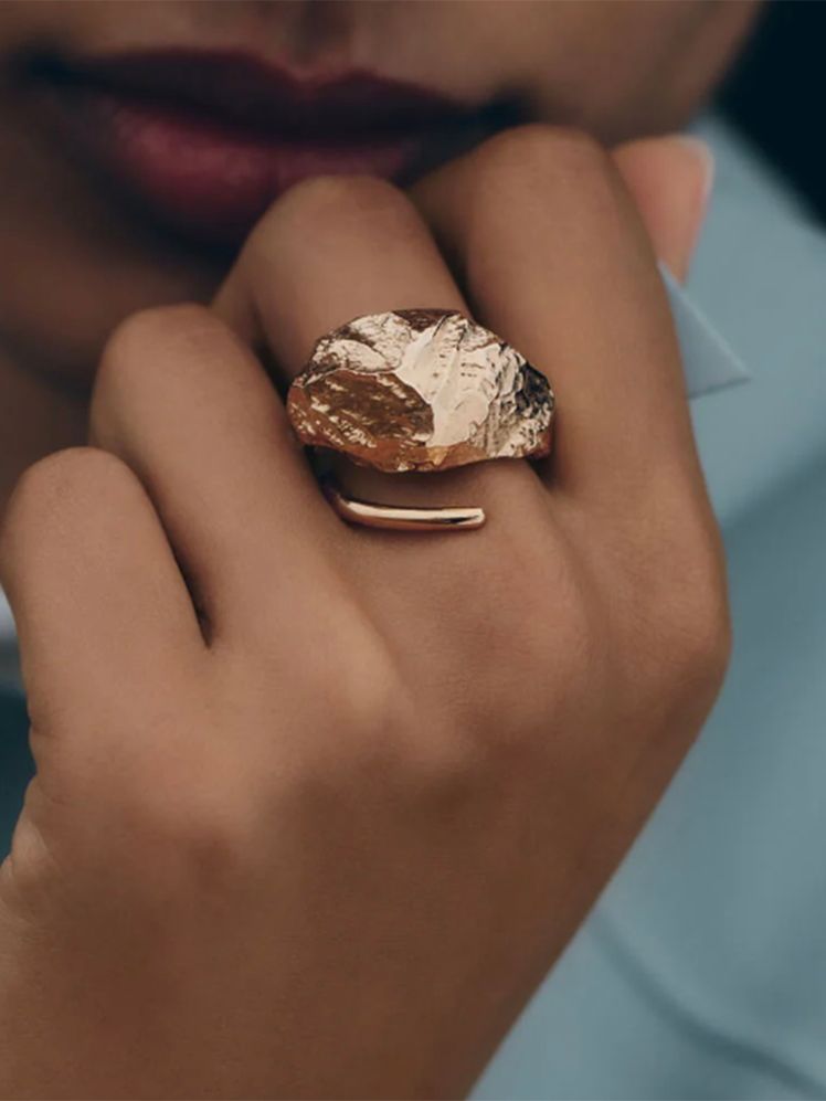 Polène may be best known for its luxury leather handbags, but the French brand — founded by three siblings back in 2016 — offers a limited range of silver and gold accessories too. Crafted from brass and gilded in 24-carat gold, this statement ring consists of a rough, rock-like centrepiece and a delicate band, plus is surprisingly lightweight, making it ideal for everyday wear.