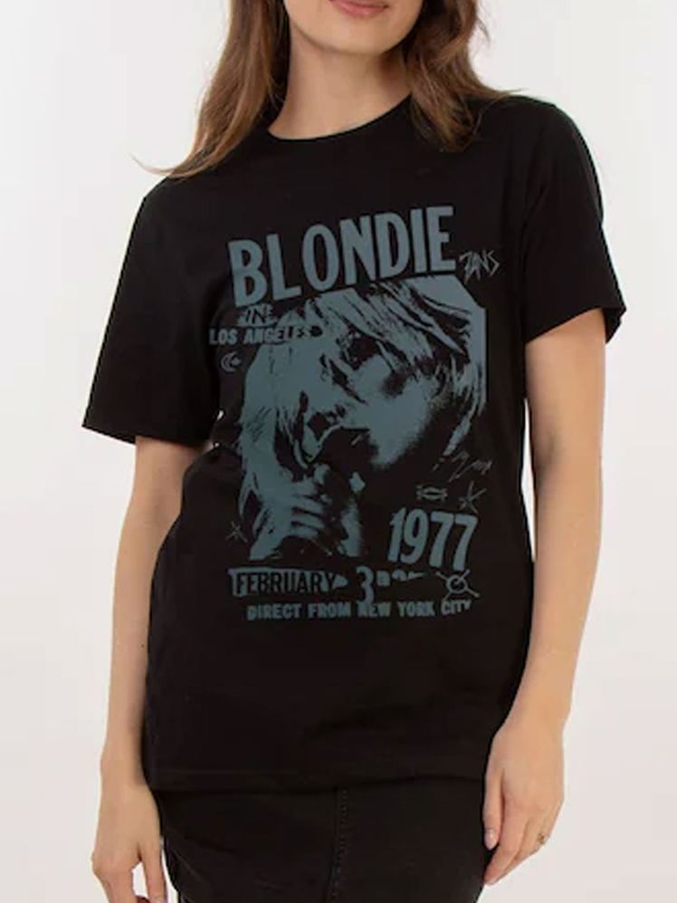 Brands In Black Blondie Tour 1977 Chest Women Boyfriend Fit Music T-Shirt