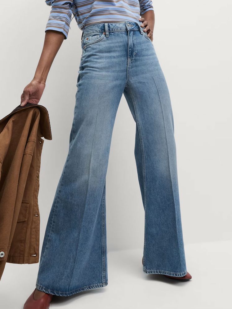Your ‘90s flared jeans don’t always have to do all of the talking — as shown above, they can take a backseat while the rest of your outfit takes centre stage. This look is all about adopting a ‘more is more’ attitude — add accessories like chunky gold earrings, a slouchy suede bag and a hat and/or scarf. Just make sure you keep things within the same decade — the style pictured is very ’70s-coded — and colour palette so that the overall look is as coherent as it is chic.
