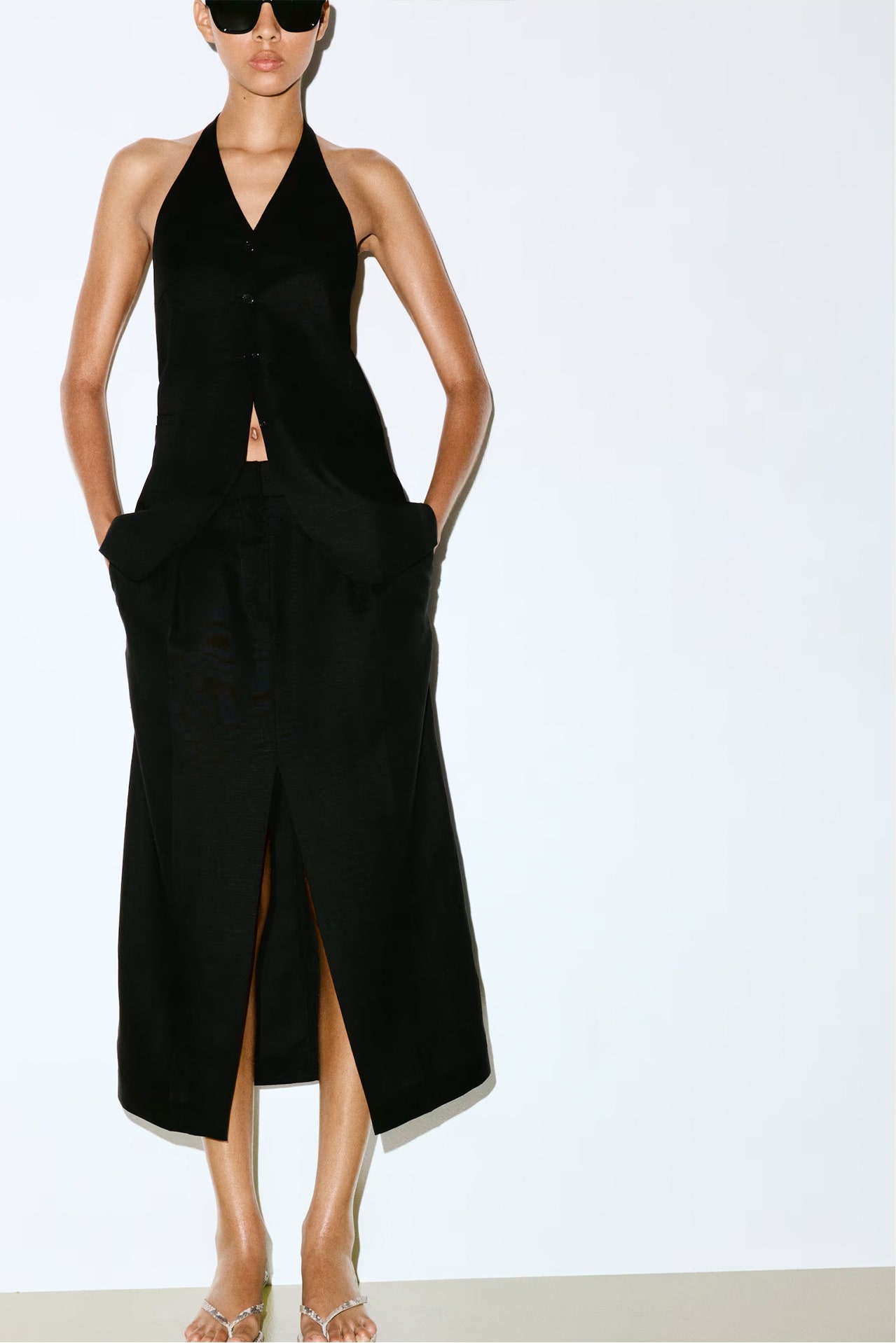 While you likely own a set of co-ords involving trousers or shorts, this season we’re partial to the midi skirt and halter-neck vest set made from a linen blend that is perfect for beating the heat. The sleeveless vest boasts a cool silhouette, while the midi-length skirt ensures an airy elegance. Whether you’re strolling through town, to the office or are dining outdoors, this set is a real chameleon and can adapt to any occasion.