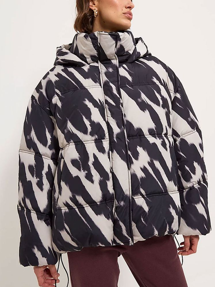 Printed Zip Through Oversized Puffer Jacket