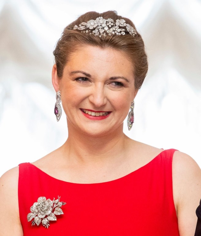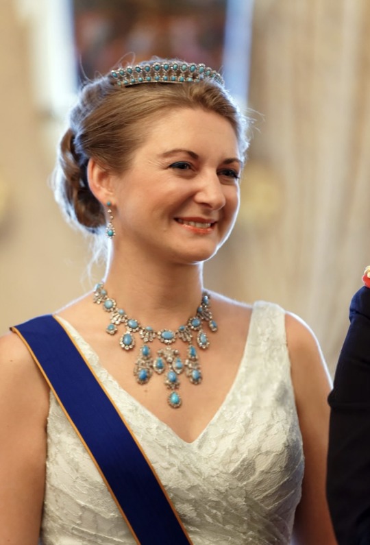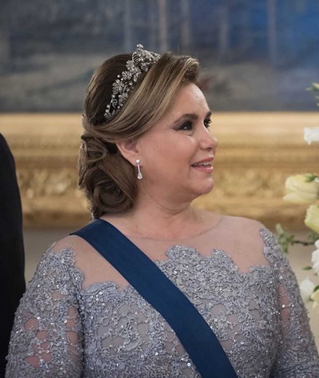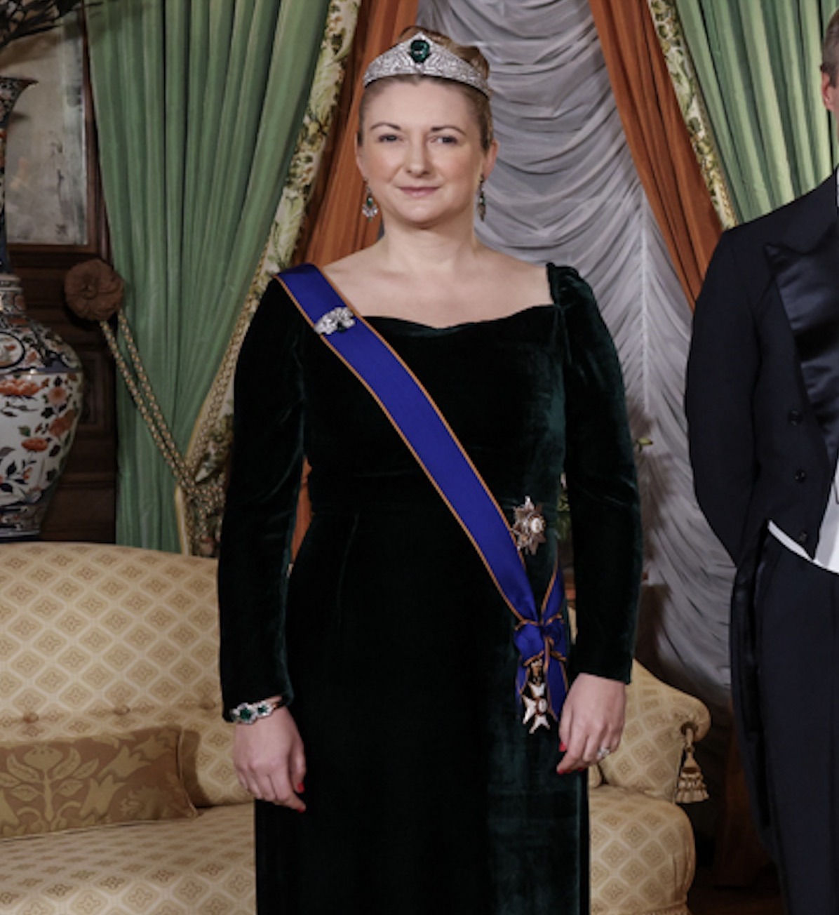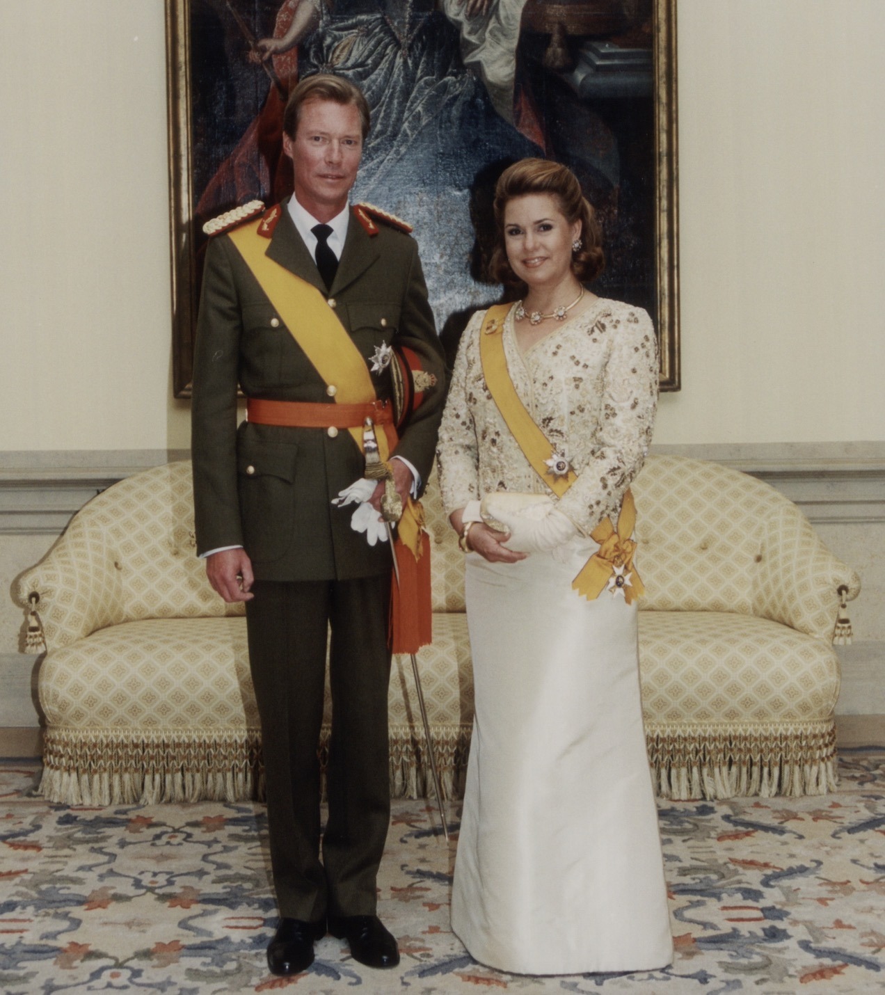 Grand Duke Henri wore Uniform with the Sash and Star of the Order of the Gold Lion of the House of Nassau. Grand Duchess Maria Theresa wore a Diamond Rosette Necklace and Earrings, and the Sash and Star of the Order of the Gold Lion of the House of Nassau.