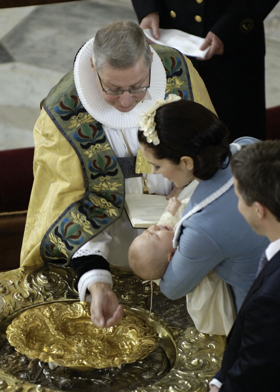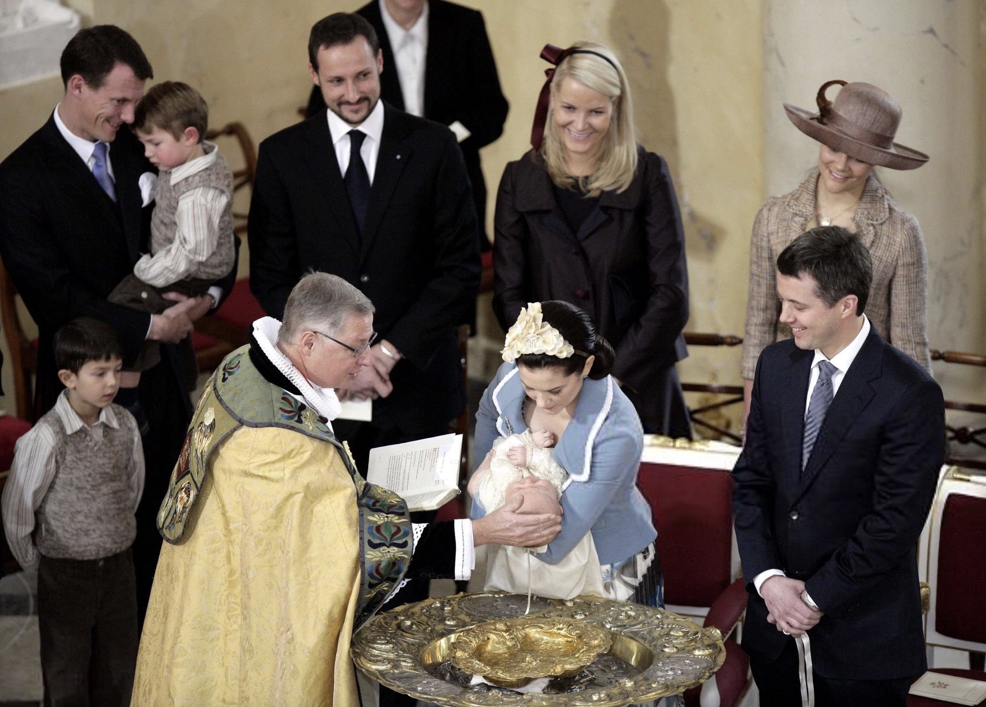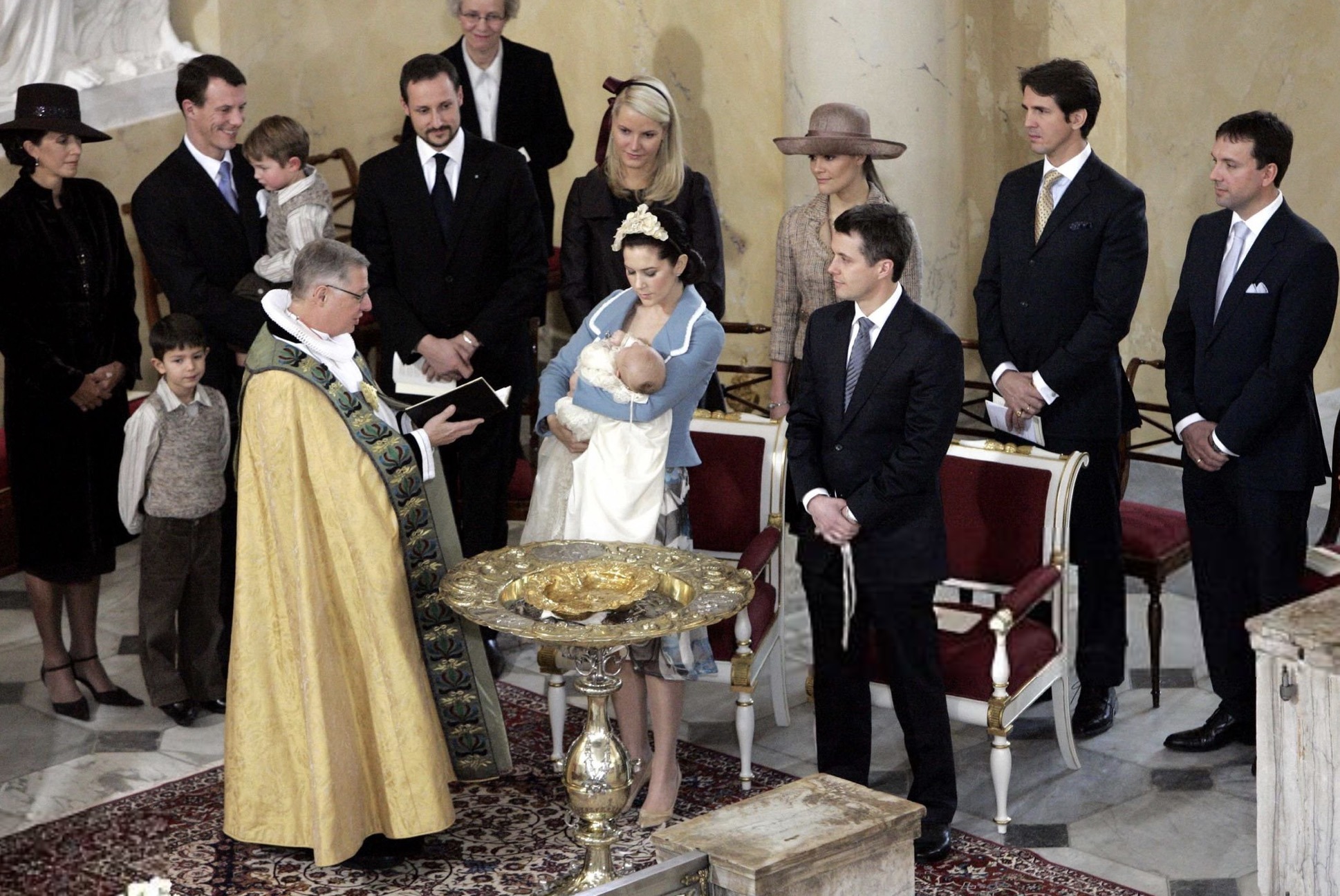 Prince Christian’s godparents include Crown Princess Victoria of Sweden, Prince Joachim of Denmark, Crown Prince Haakon and Crown Princess Mette-Marit of Norway, and Crown Prince Pavlos of Greece.