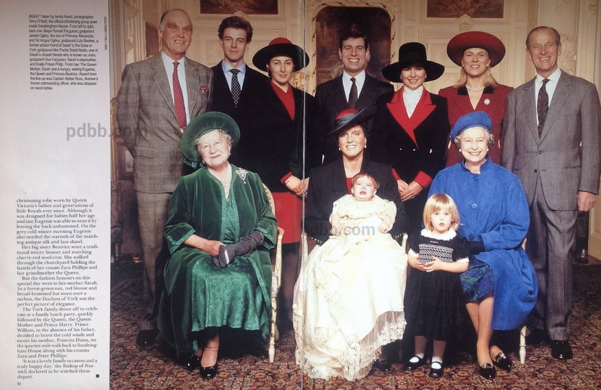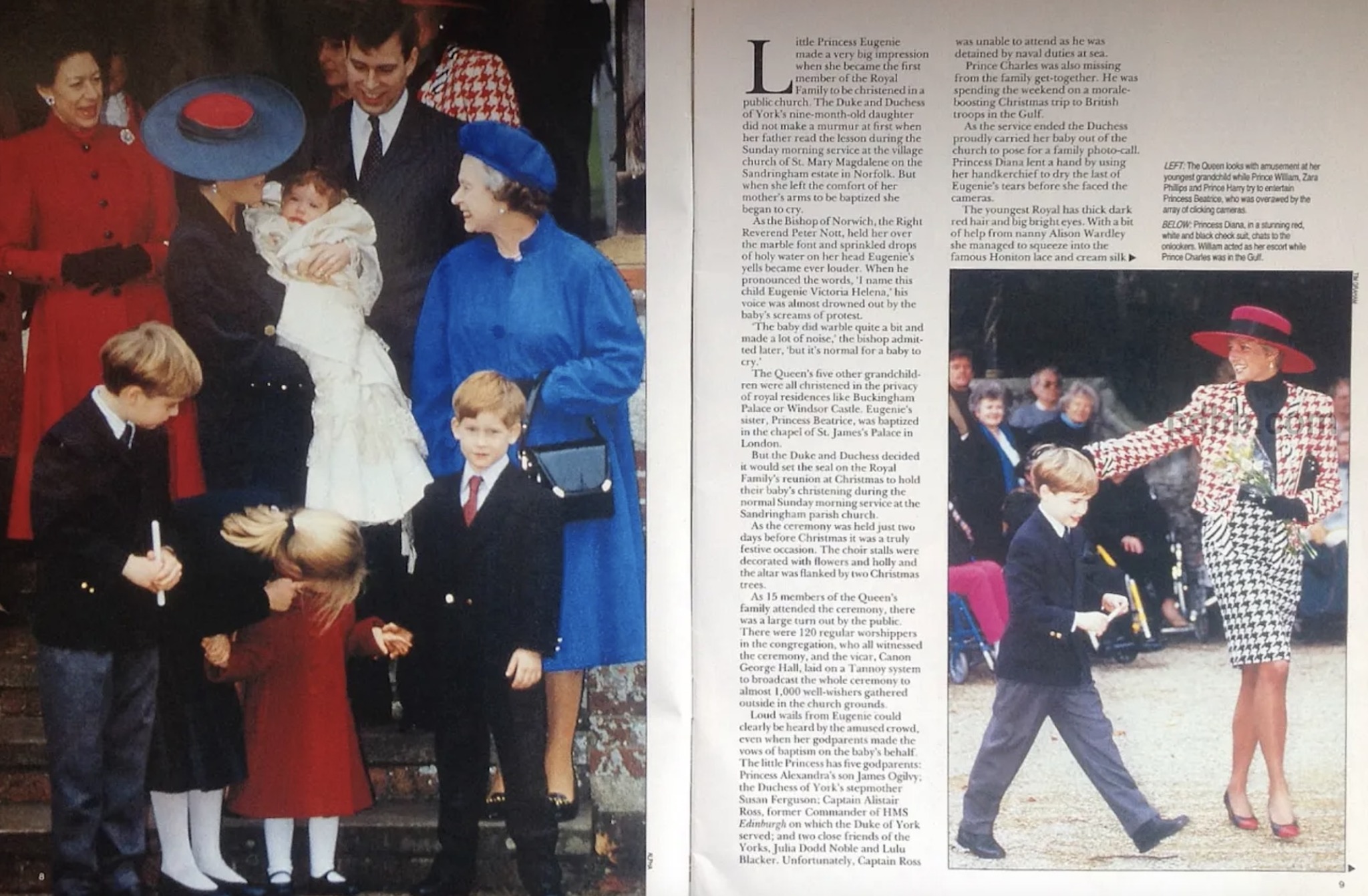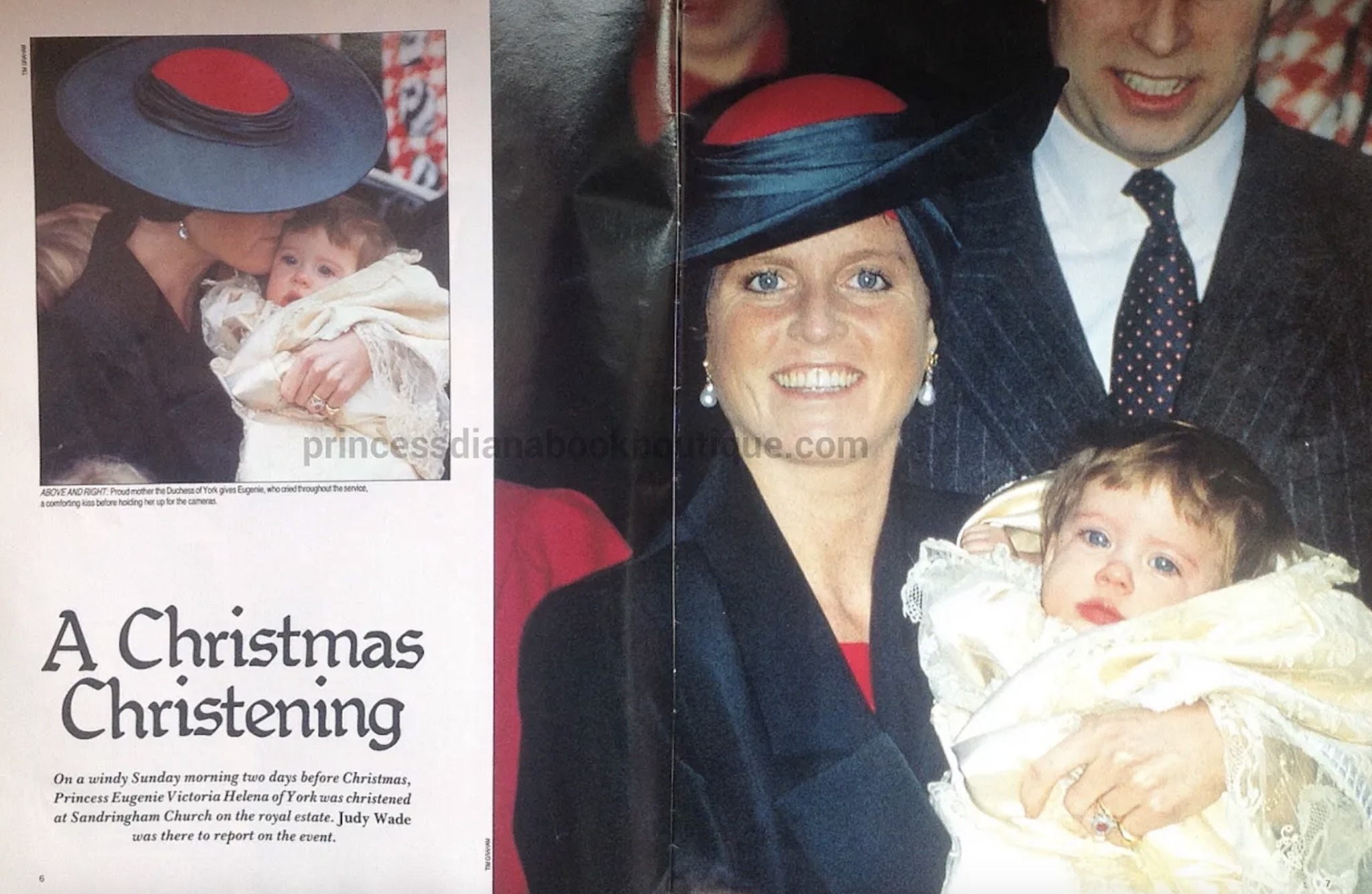 Princess Eugenie of York, the younger daughter of the then Prince Andrew and Duchess of York, was christened at the St. Mary Magdalene Church in Sandringham, followed by a Reception at Sandringham House, just a few days before Christmas. The Christening was also featured in the the 1992 documentary “Elizabeth R”.