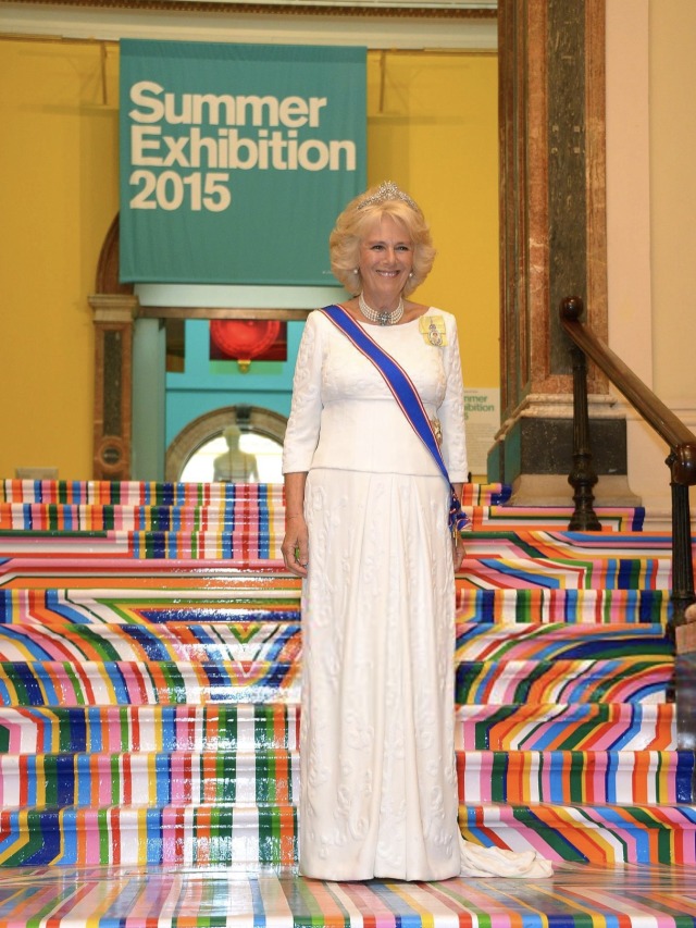 The then Duchess of Cornwall attended the Annual Dinner to celebrate the Summer Exhibition of the Royal Academy of Arts at Burlington House in London on this day in 2015, 10 years ago.