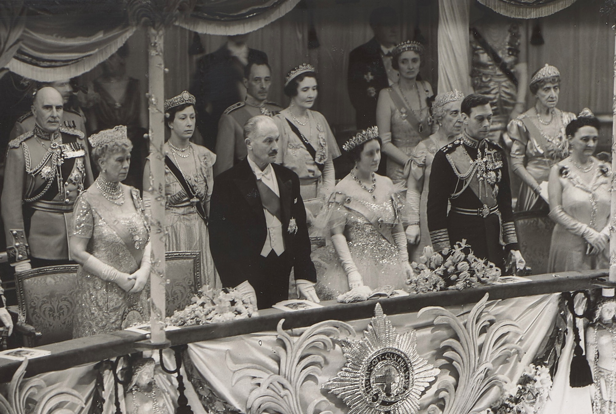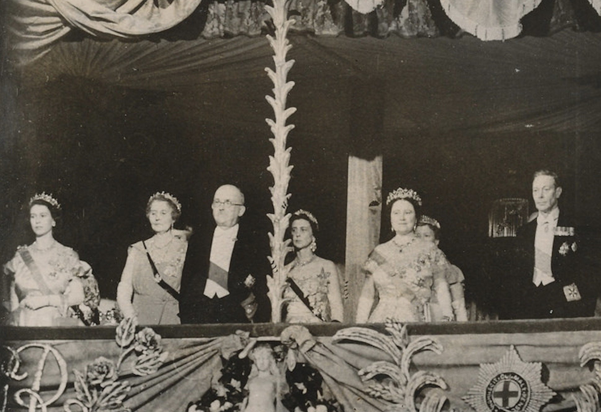 King George VI and Queen Elizabeth hosted the French President and Madame Lebrun on their State Visit to Britain in 1939, reaffirming the Entente Cordiale months before the outbreak of the Second World War and after the King and Queen’s landmark 1938 State Visit to France. On the second evening of the State Visit, King George VI and Queen Elizabeth (wearing Queen Victoria’s Oriental Circlet Tiara) joined President and Madame Lebrun (in the Cartier Flower Tiara) for a Gala Performance at the Royal Opera House in Covent Garden.