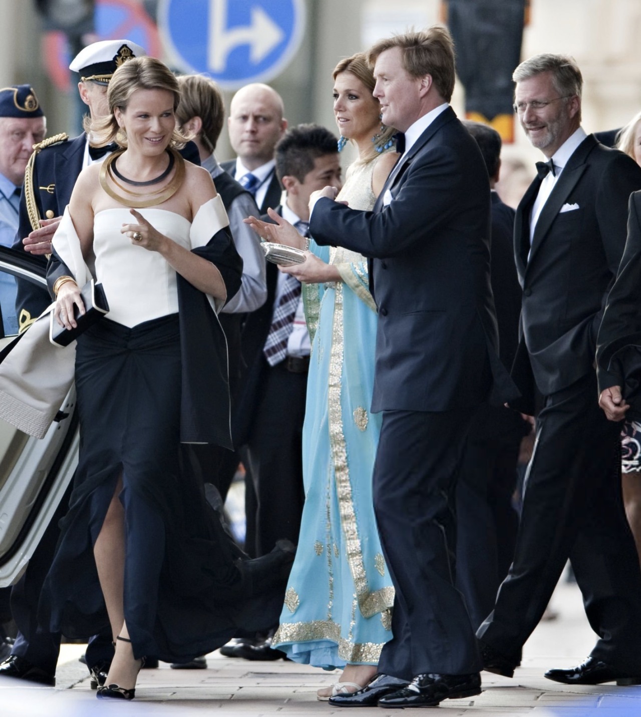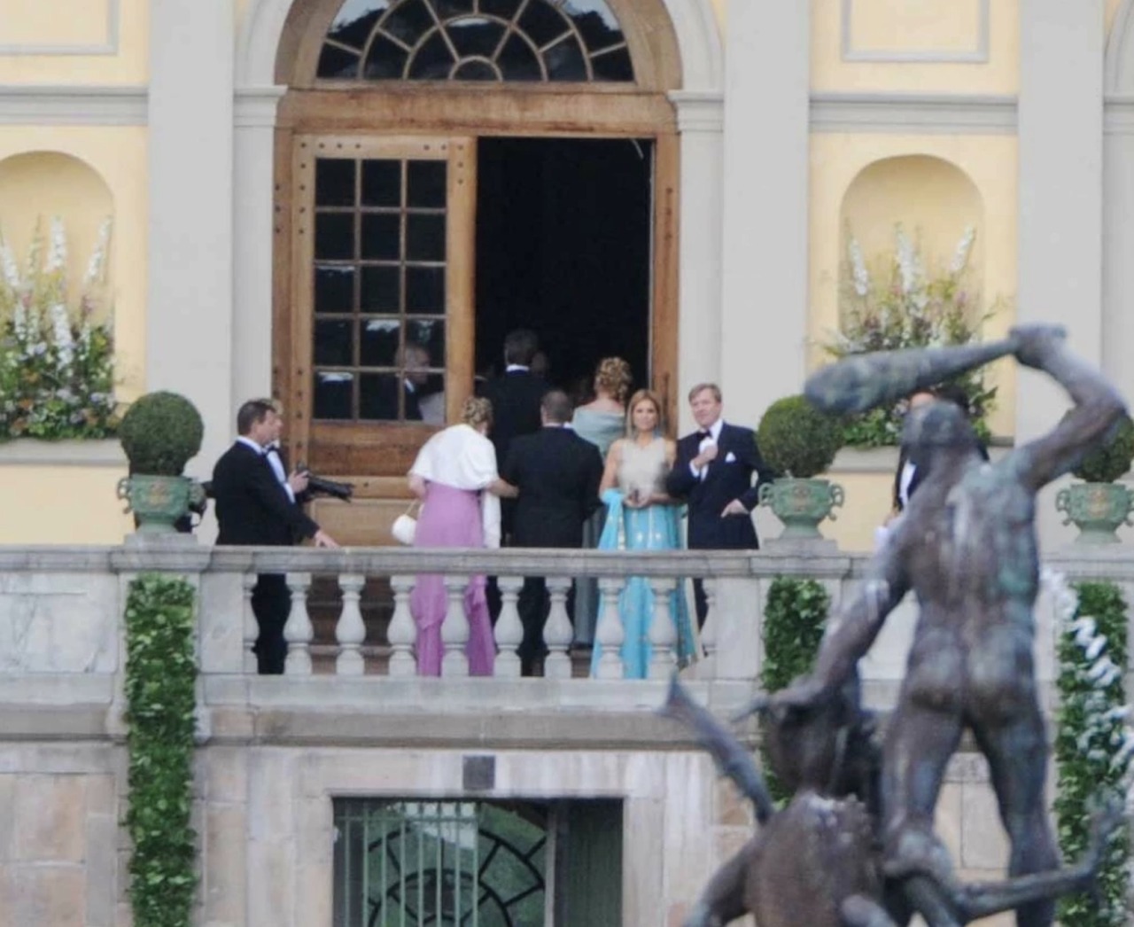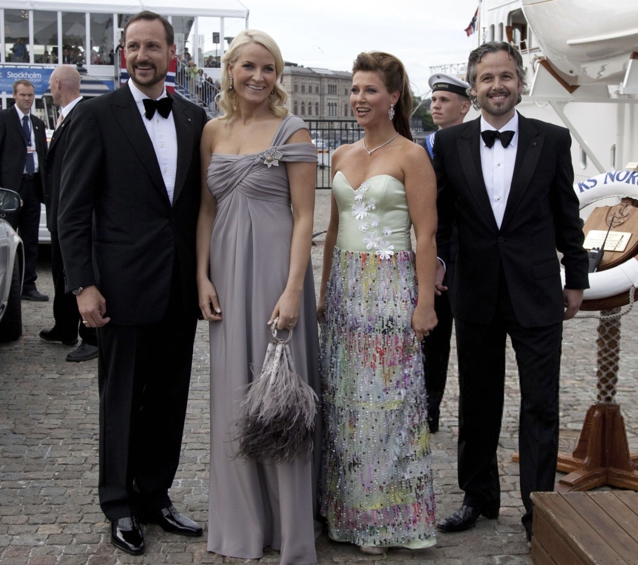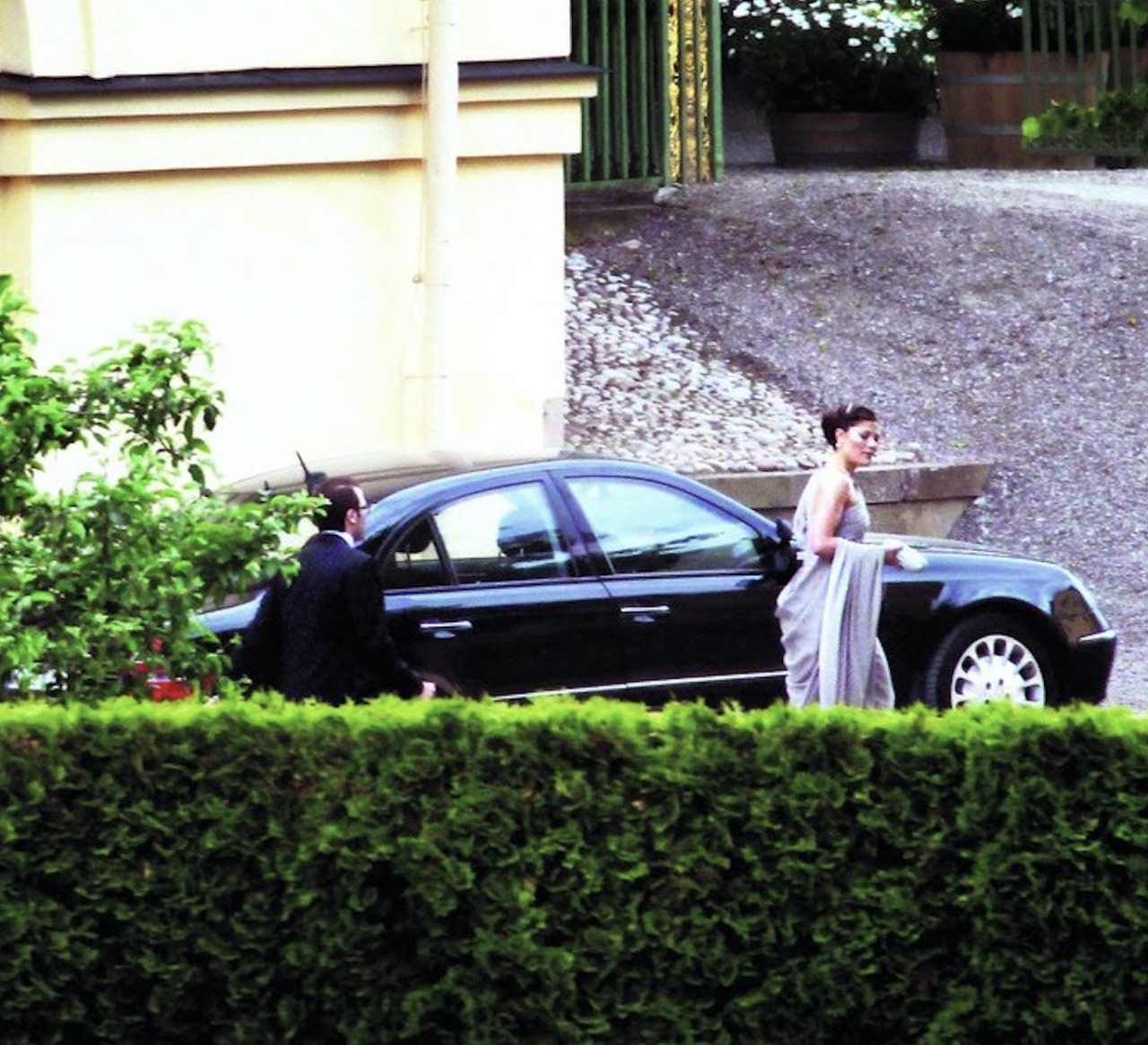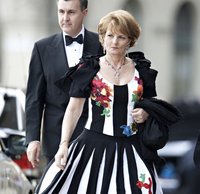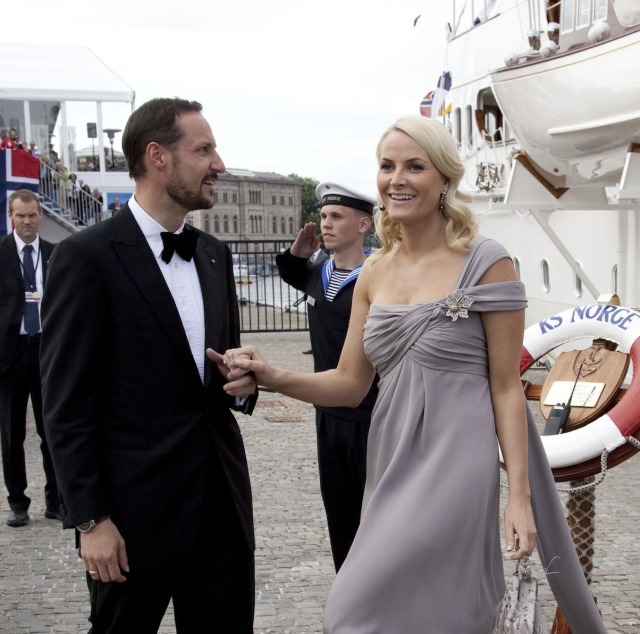 King Carl XVI Gustaf and Queen Silvia hosted a Gala Dinner at Drottningholm Palace, two days before the Wedding of Crown Princess Victoria of Sweden and Daniel Westling. Since this was a private Dinner, Royal Guests were only pictured departing their Royal Yachts or the Grand Hotel in Stockholm, with long-range shots taken of Drottningholm Palace.