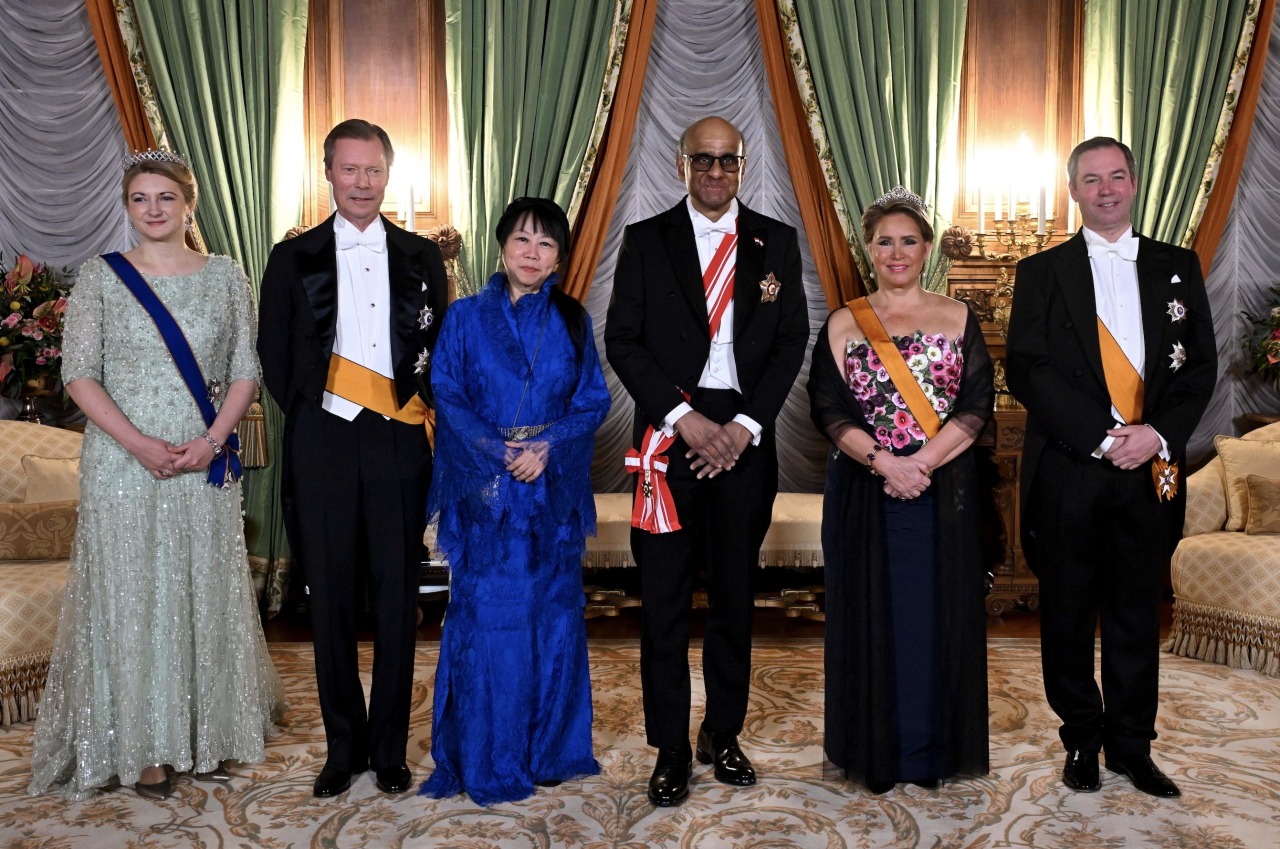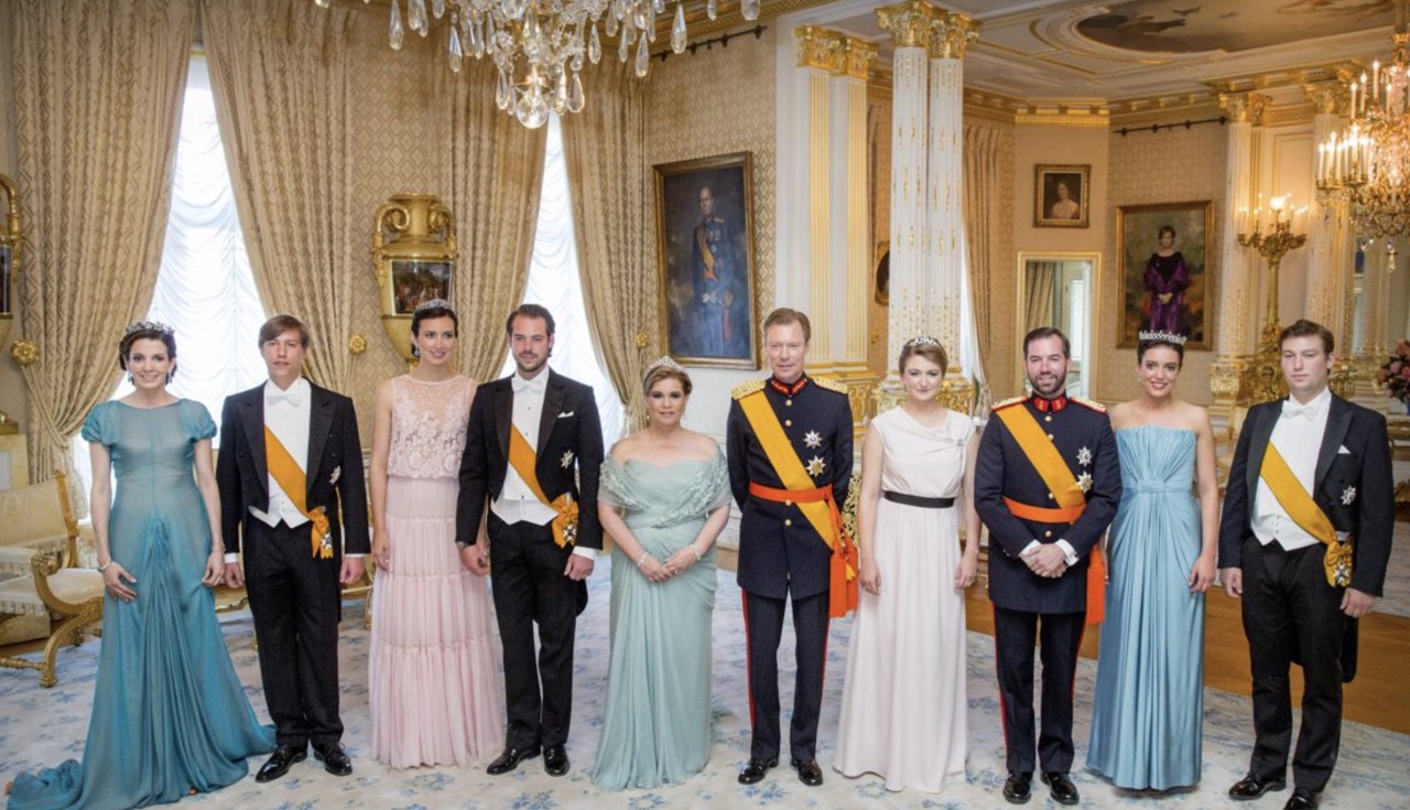 Most recently, the last State Banquet of the Grand Duke’s Reign was held in March earlier this year for the State Visit of the President of Singapore, at which Grand Duchess Maria Teresa wore the Belgian Scroll Tiara and Hereditary Grand Duchess Stéphanie wore the Chaumet Choker Tiara.