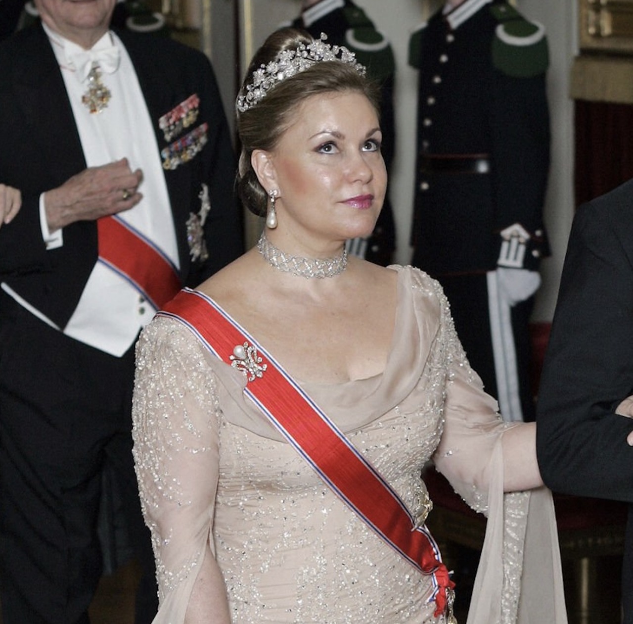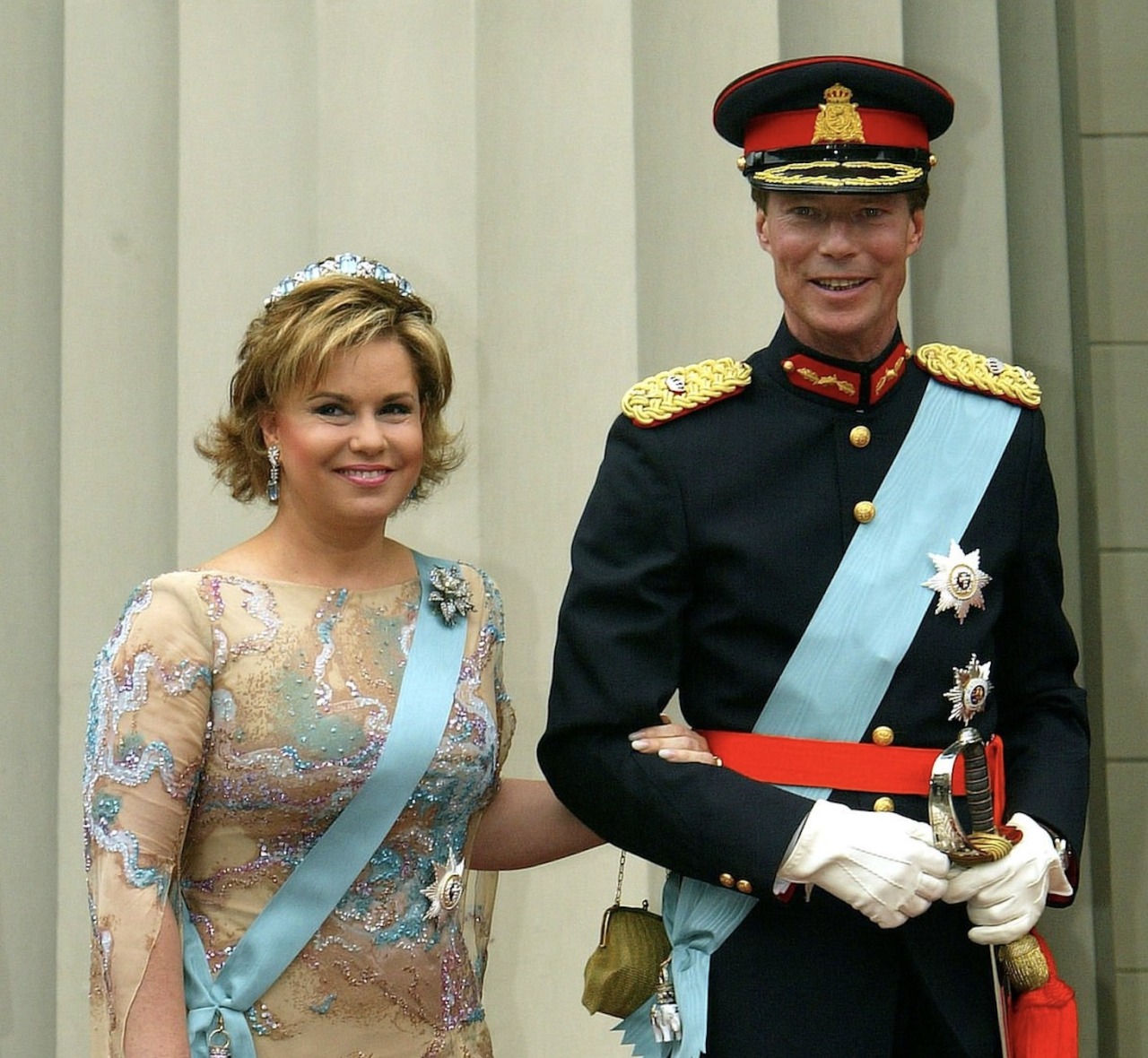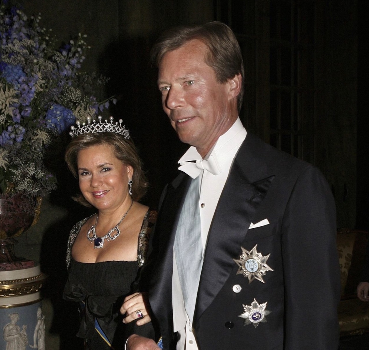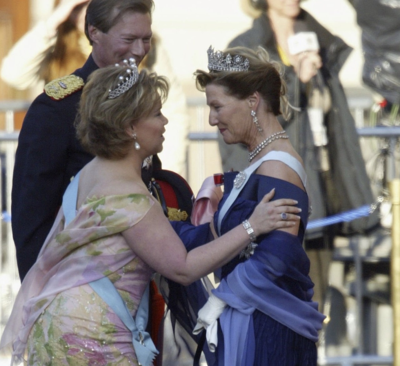 Grand Duchess Maria Teresa wore the Chaumet Choker Tiara for the Wedding of Crown Prince Haakon of Norway in 2001, while Grand Duchess Josephine Charlotte wore the Belgian Scroll Tiara.