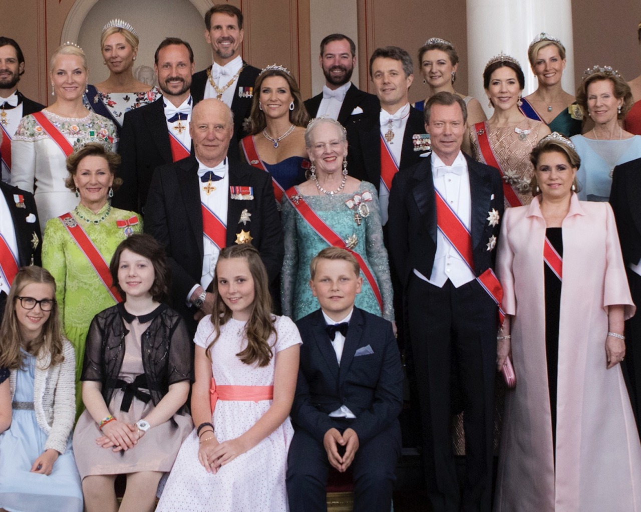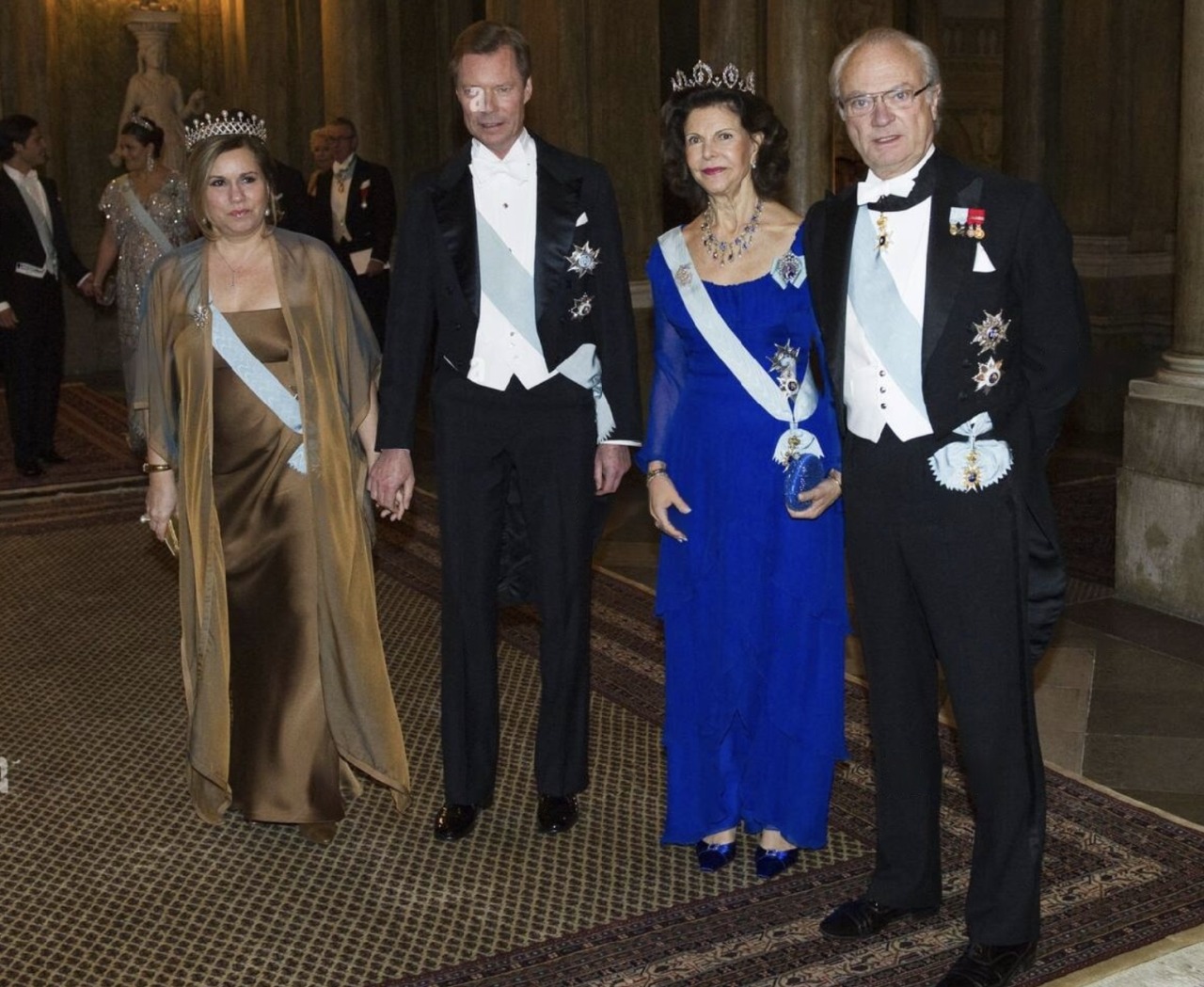The following evening, Grand Duke Henri and Grand Duchess Maria Theresa hosted a Gala Dinner at Berg Castle, which had an even bigger royal attendance than the previous evening, and royal guests included King Carl XVI Gustaf and Queen Silvia of Sweden, Queen Fabiola, Crown Prince Philippe, and Princess Mathilde of Belgium, King Constantine and Queen Anne Marie of Greece, Queen Beatrix, Crown Prince Willem-Alexander, and Princess Maxima of The Netherlands, Crown Prince Frederik and Crown Princess Mary of Denmark, Crown Prince Haakon of Norway, Crown Prince Felipe and Crown Princess Letizia of Spain, the Princess Royal, Tsar Simeon and Queen Margarita of Bulgaria, Prince Albert II of Monaco, Prince Hassan and Princess Sarvath of Jordan, the Duke and Duchess of Braganza, Crown Prince Alexander and Crown Princess Katherine of Serbia, Crown Princess Margareta and Prince Radu of Romania, and the Aga Khan among members of the extended Grand Ducal Family.