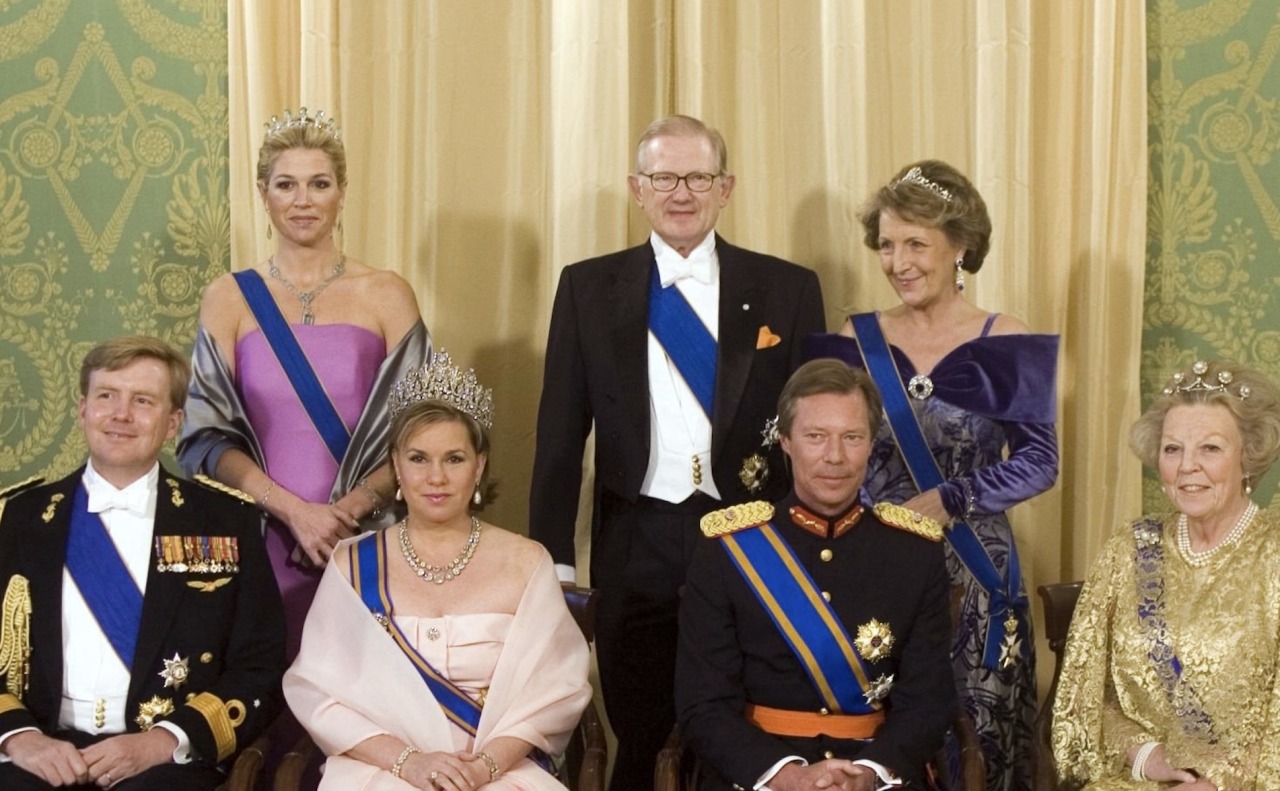 Grand Duchess Maria Teresa wore the Luxembourg Empire Tiara while Queen Beatrix wore the Pearl Button Tiara, Princess Maxima wore Aquamarine Tiara and Princess Margriet wore a Sapphire Tiara for the Luxembourg State Visit to The Netherlands in 2006.
