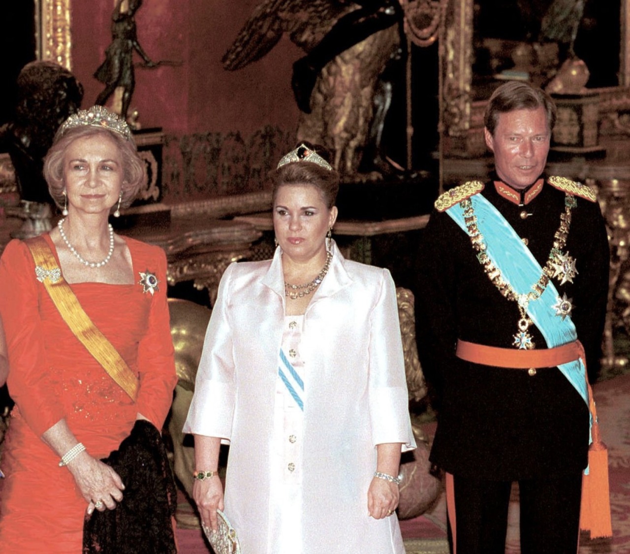 Grand Duchess Maria Teresa wore the Chaumet Emerald Tiara and Queen Sofia wore the Mellerio Shell Tiara for the Luxembourg State Visit to Spain in 2001, which was the first outgoing State Visit of the Reign.