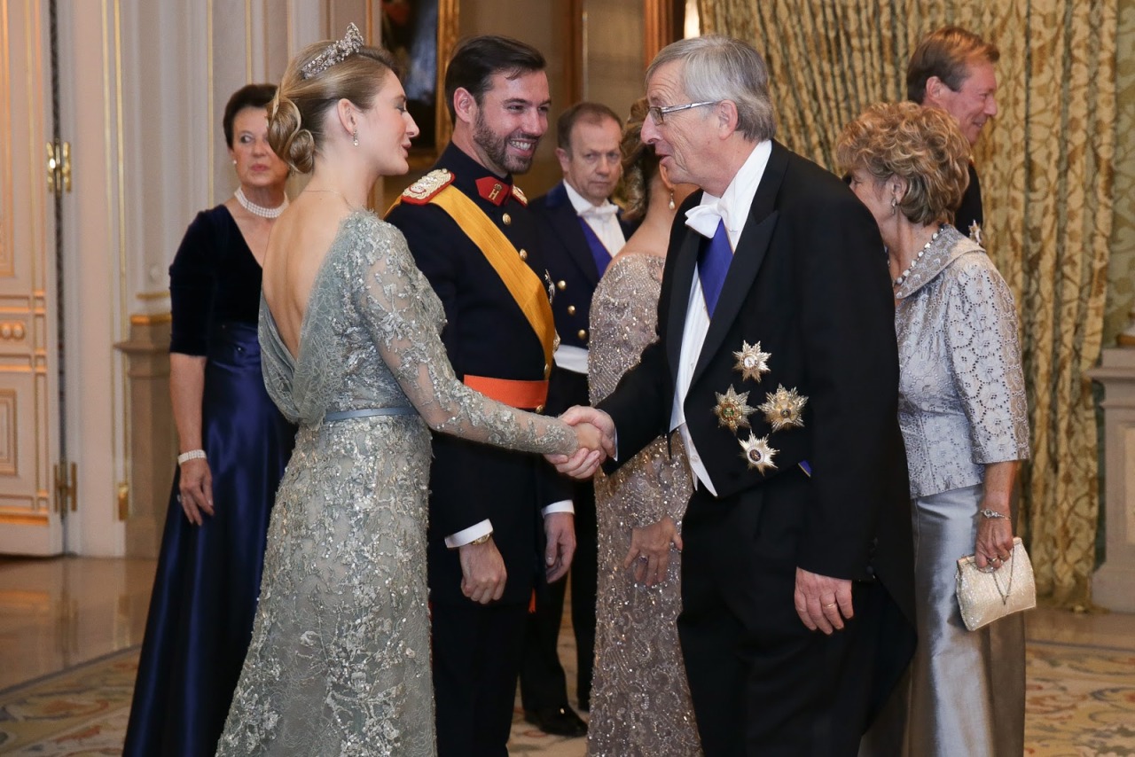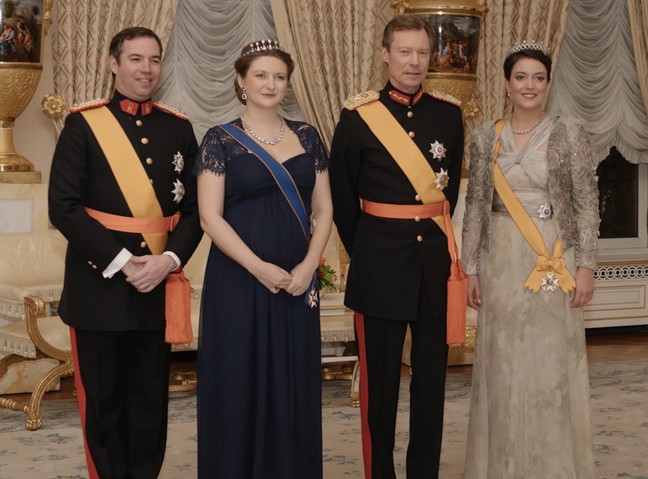 For the National Day Gala in 2015, Grand Duchess Maria Teresa wore the Belgian Scroll Tiara, Hereditary Grand Duchess Stéphanie was in the Grand Duchess Adélaïde Tiara, Princess Alexandra wore the Citrine and Pearl Tiara, Princess Claire was in the Ruby Tiara, and Princess Tessy wore the Amethyst Tiara.