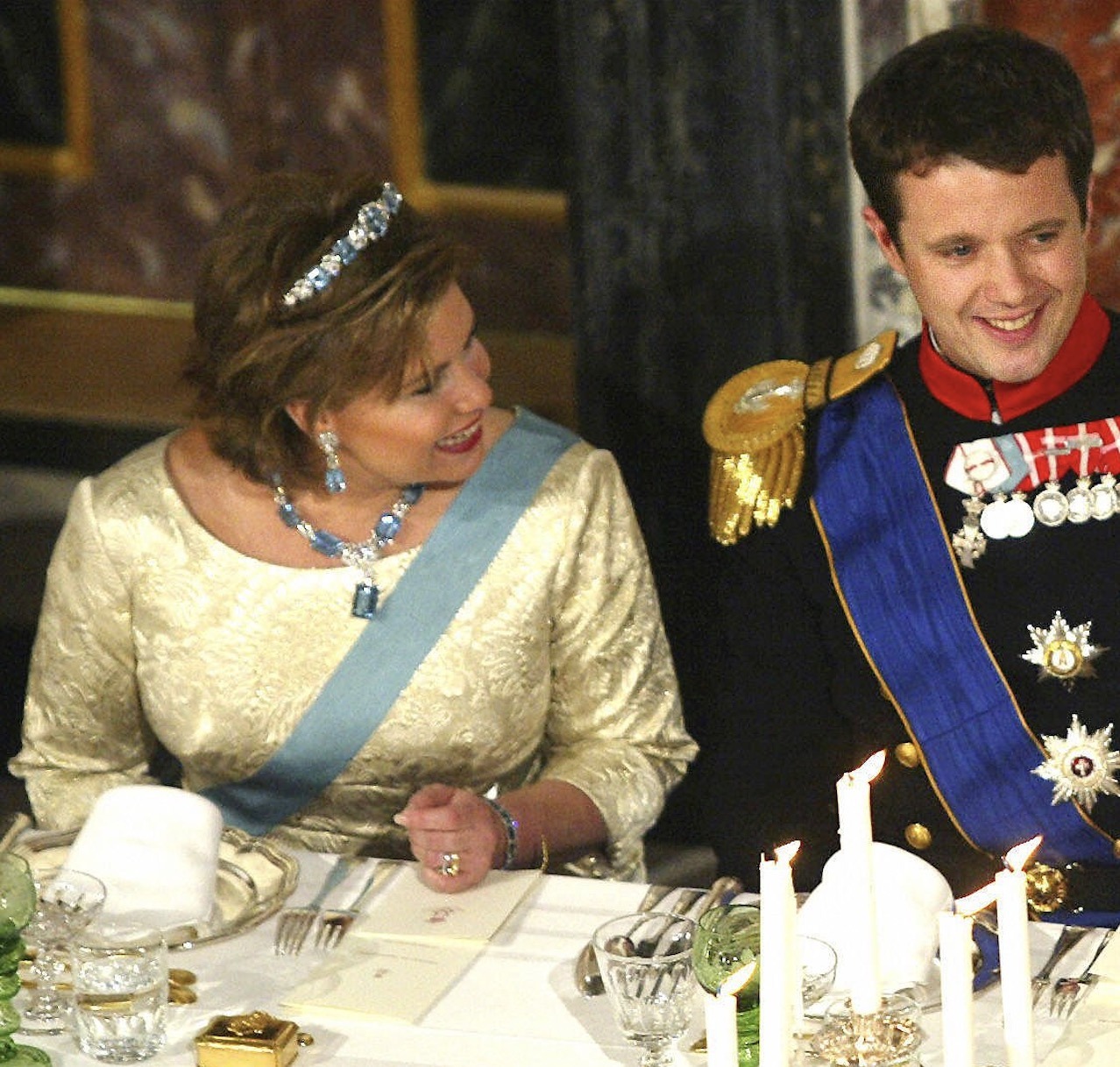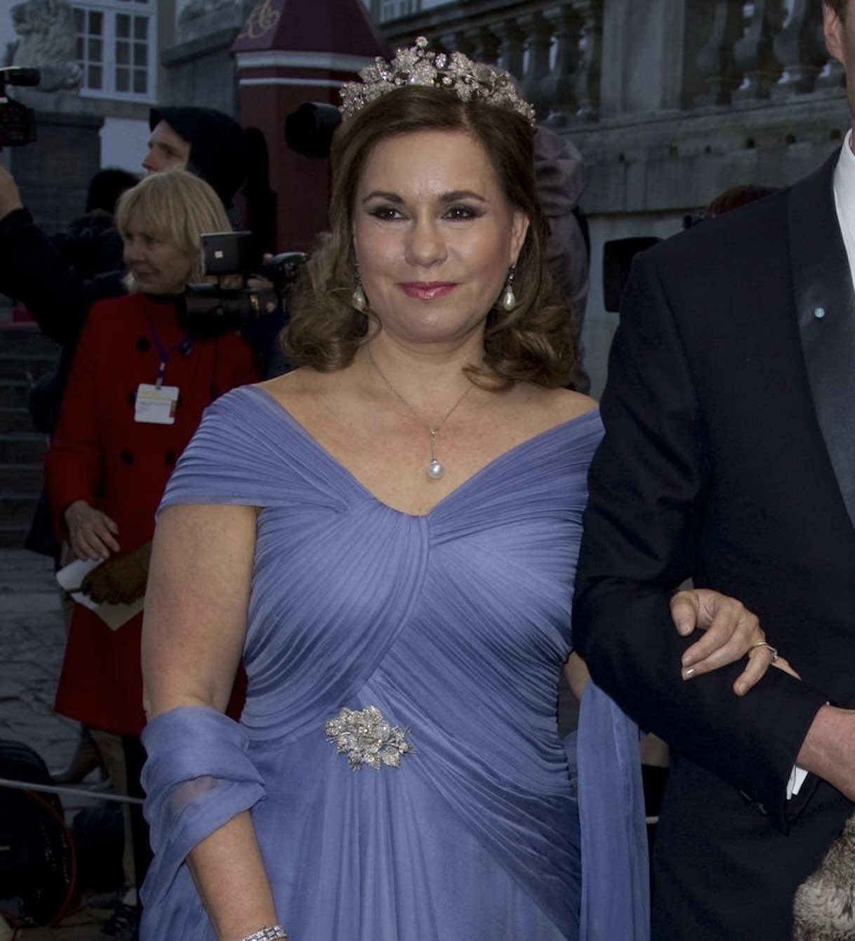 The following year, Grand Duchess Maria Teresa wore the Chaumet Choker Tiara for the Wedding Gala of Crown Prince Frederik of Denmark before wearing the Aquamarine Tiara for the Wedding Ceremony.