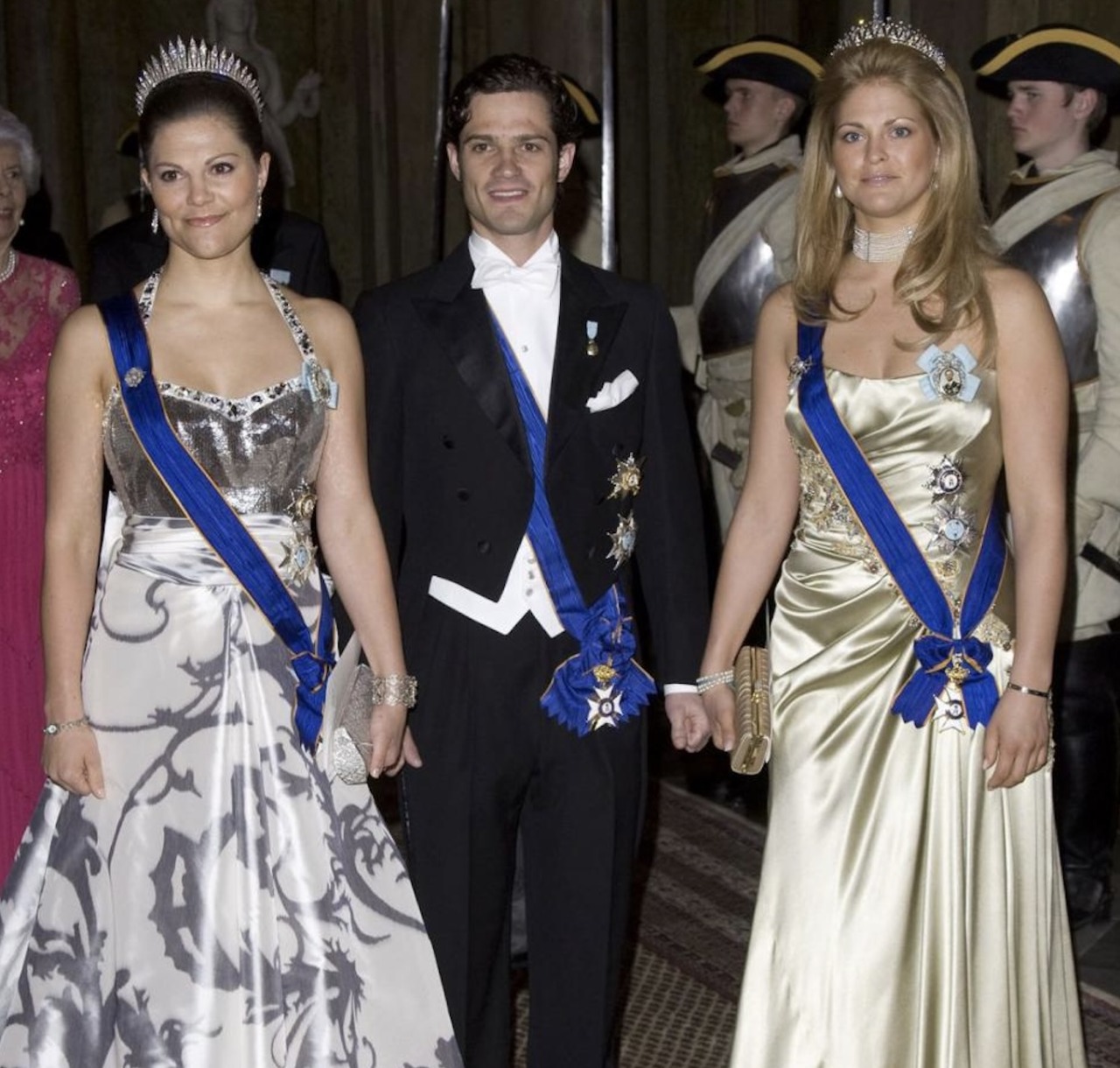 Grand Duchess Maria Teresa wore the Chaumet Emerald Tiara and Queen Silvia of Sweden was wearing the Leuchtenberg Sapphire Parure for the Luxembourg State Visit to Sweden in 2008, also attended by Crown Princess Victoria in the Baden Fringe Tiara and Princess Madeleine in the Modern Fringe Tiara. The Grand Duchess also arrived wearing the Grand Duchess Adélaïde Tiara for the Return Gala but took it off when the Swedish Royal Ladies arrived without them.