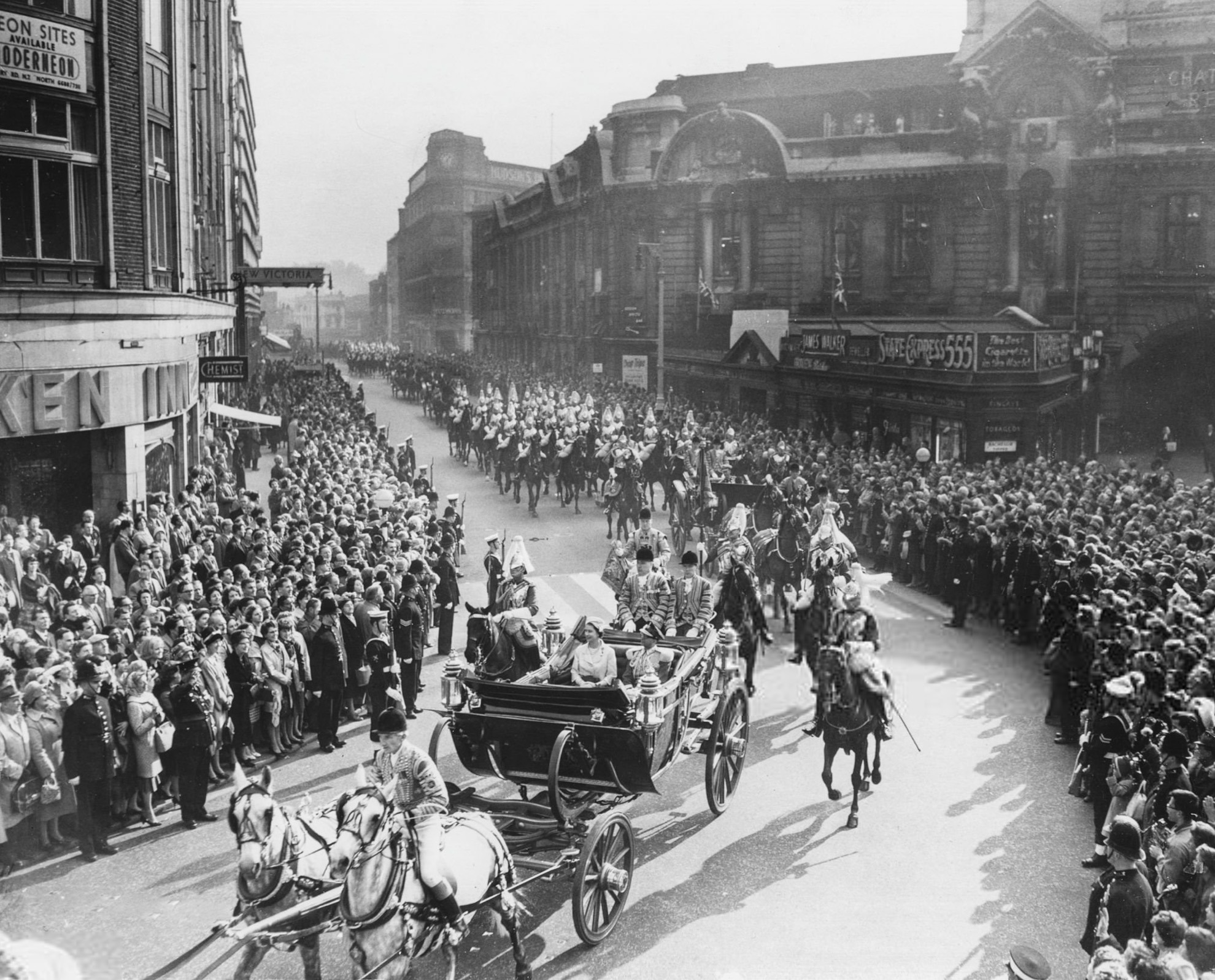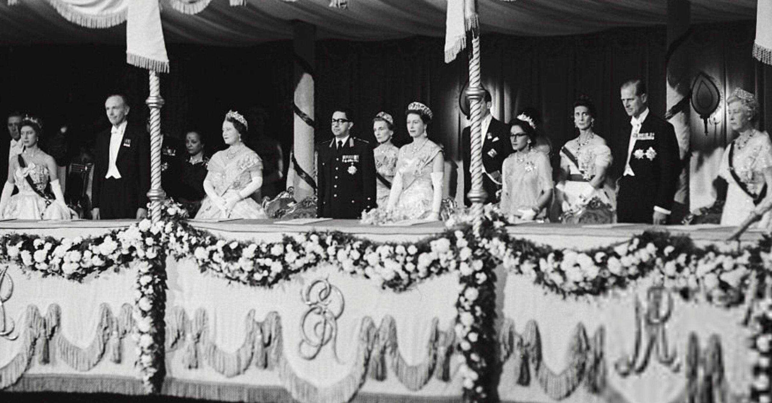 The British Royal Family received King Mahendra and Queen Ratna of Nepal at Victoria Station in London, which was followed by a Carriage Procession back to Buckingham Palace but there are no images of that evening’s State Banquet inside Buckingham Palace.