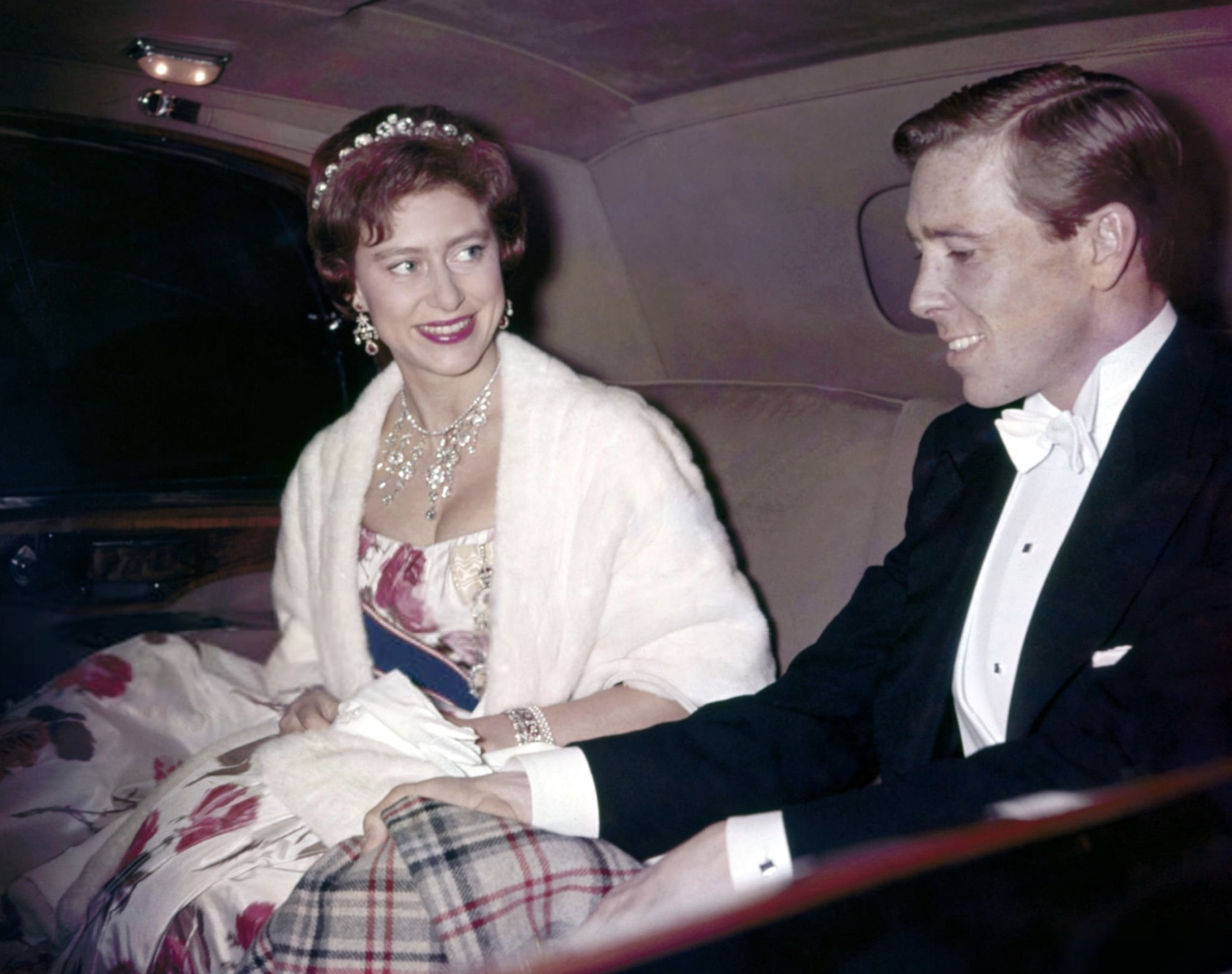 The Queen Mother (in the Greville Tiara), Princess Margaret (wearing the Lotus Flower Tiara) and Antony Armstrong-Jones,, as well as Princess Mary, Countess of Harewood (wearing the Harewood Diamond Tiara).