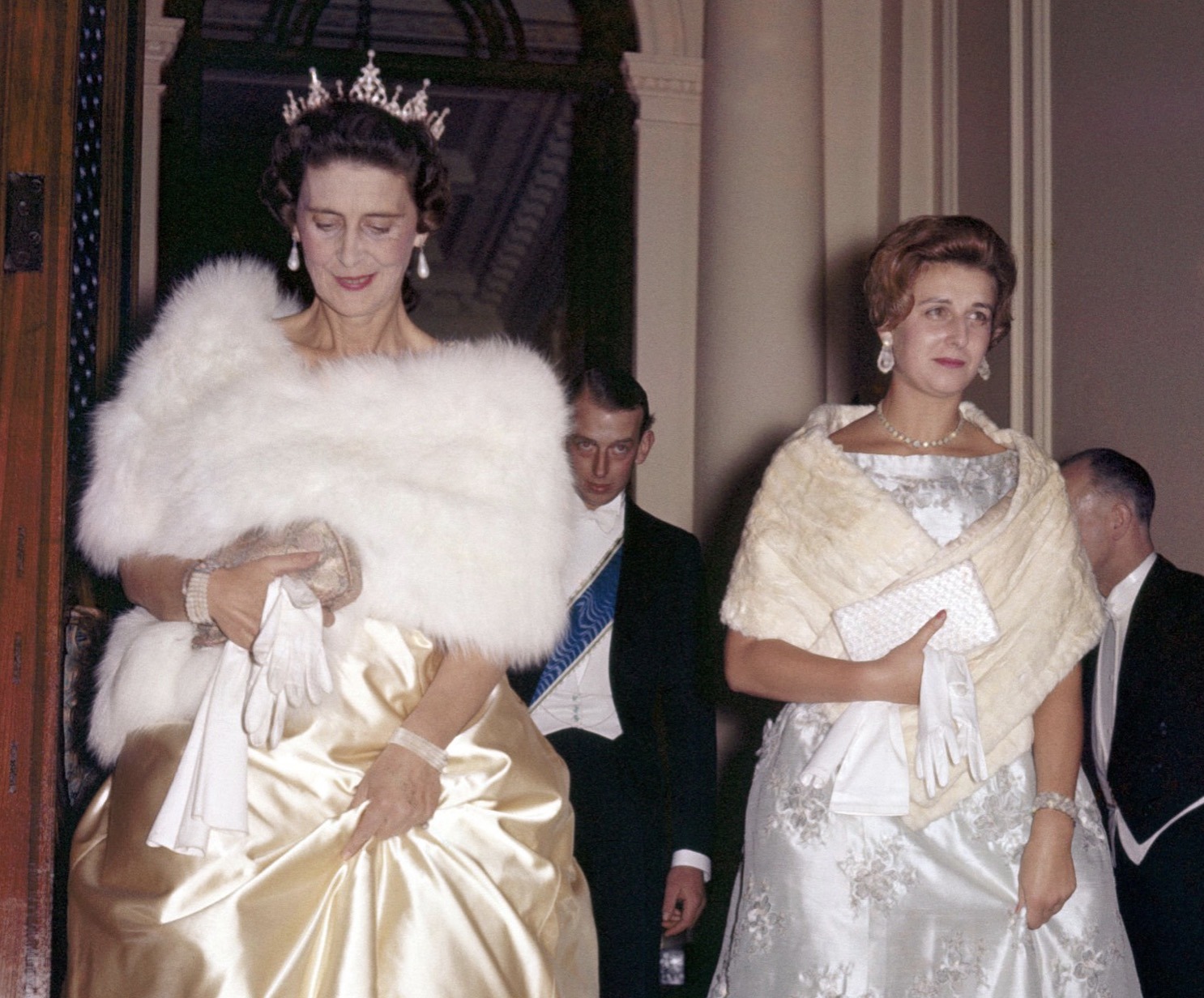 Princess Marina, Duchess of Kent wore the Kent Festoon Tiara with the Duke of Kent and Princess Alexandra of Kent.
